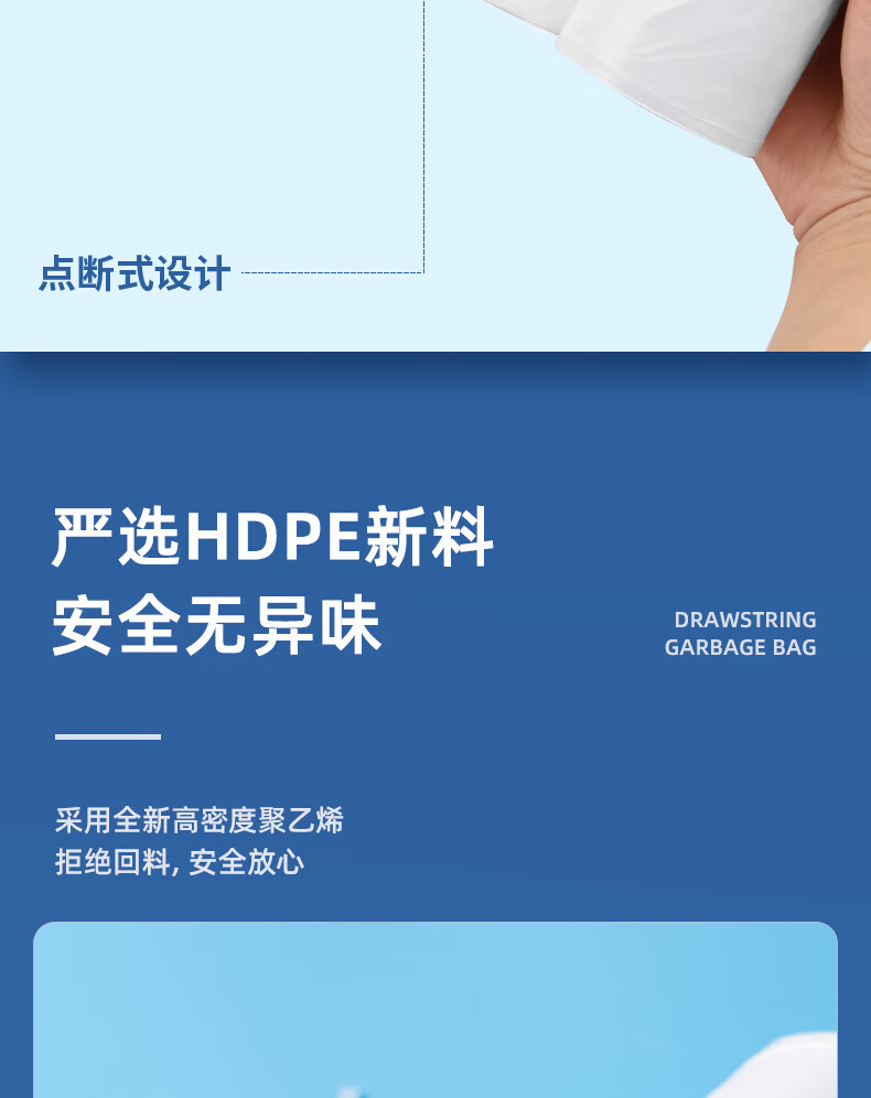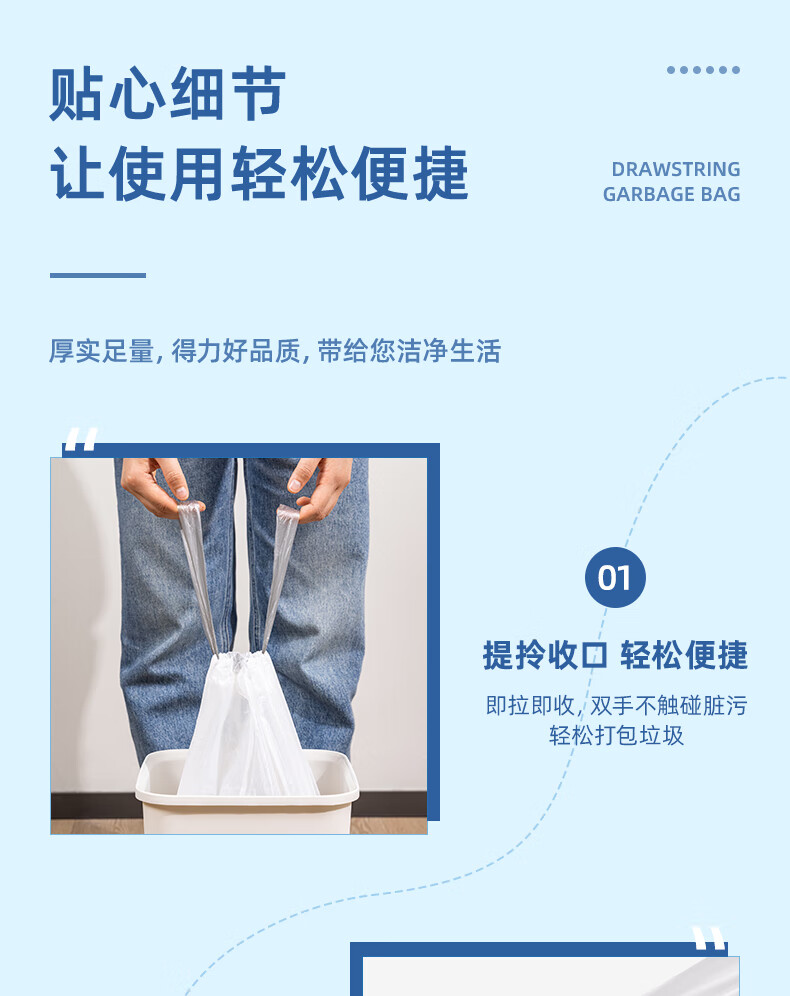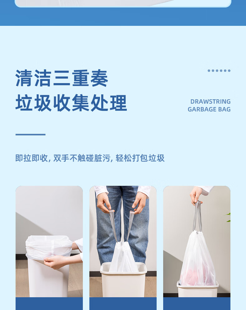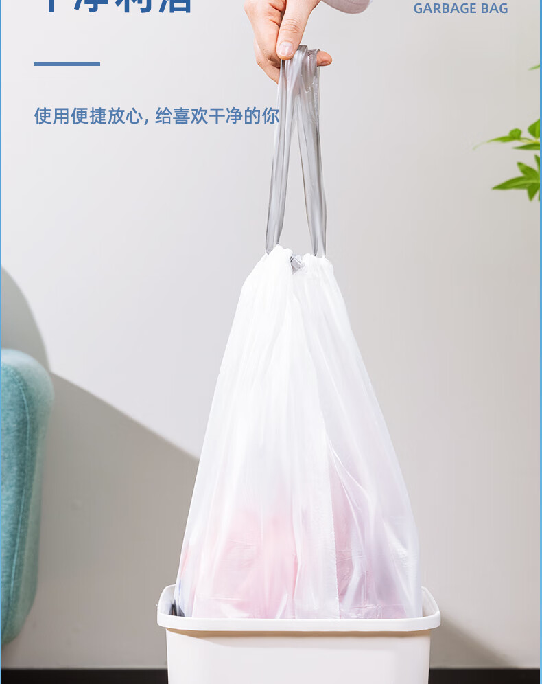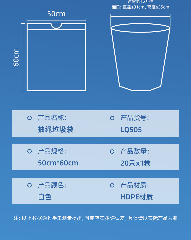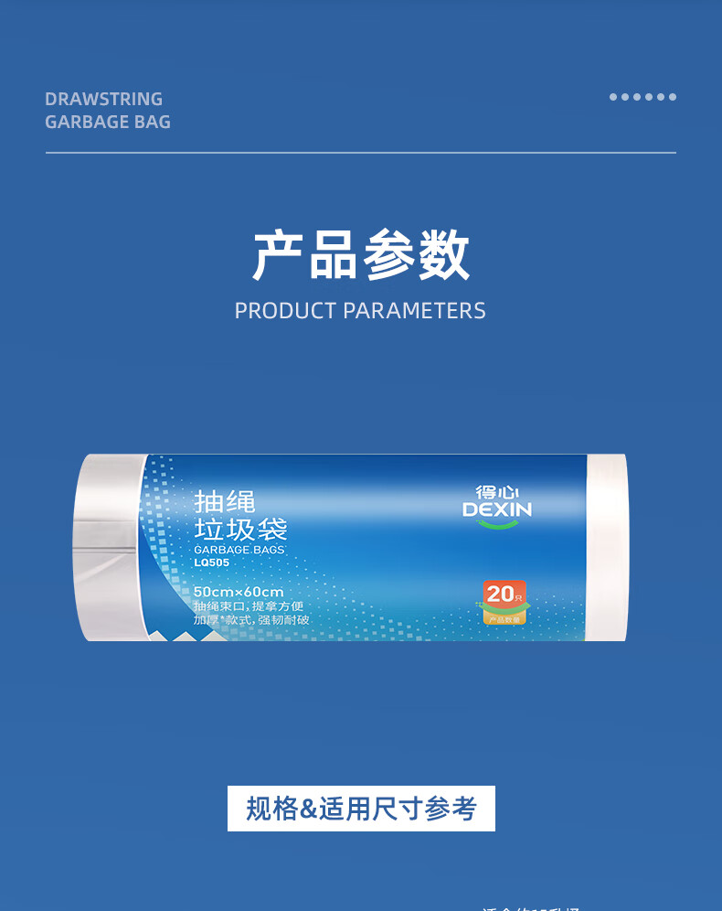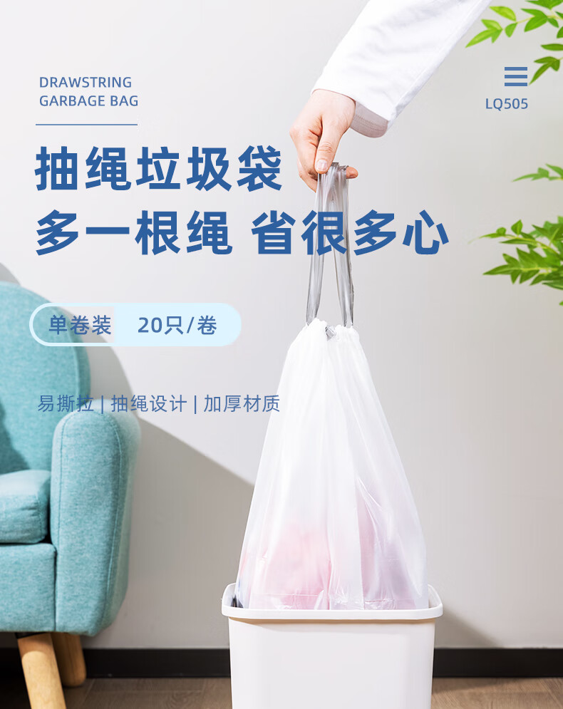 得力/deli LQ505 塑料制品 得心系列 抽绳垃圾袋 LQ505 白色 20只/卷 1卷/包
