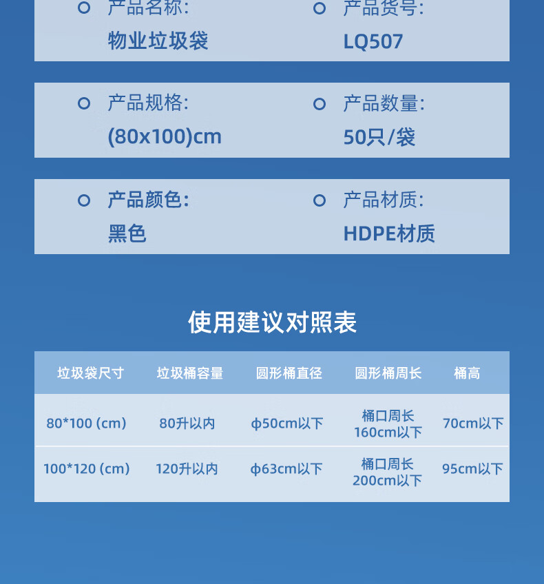 包装清单  :   物业垃圾袋(黑色)100cmx120cm(50只/包)