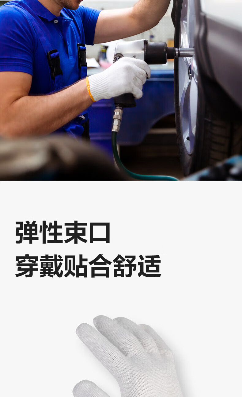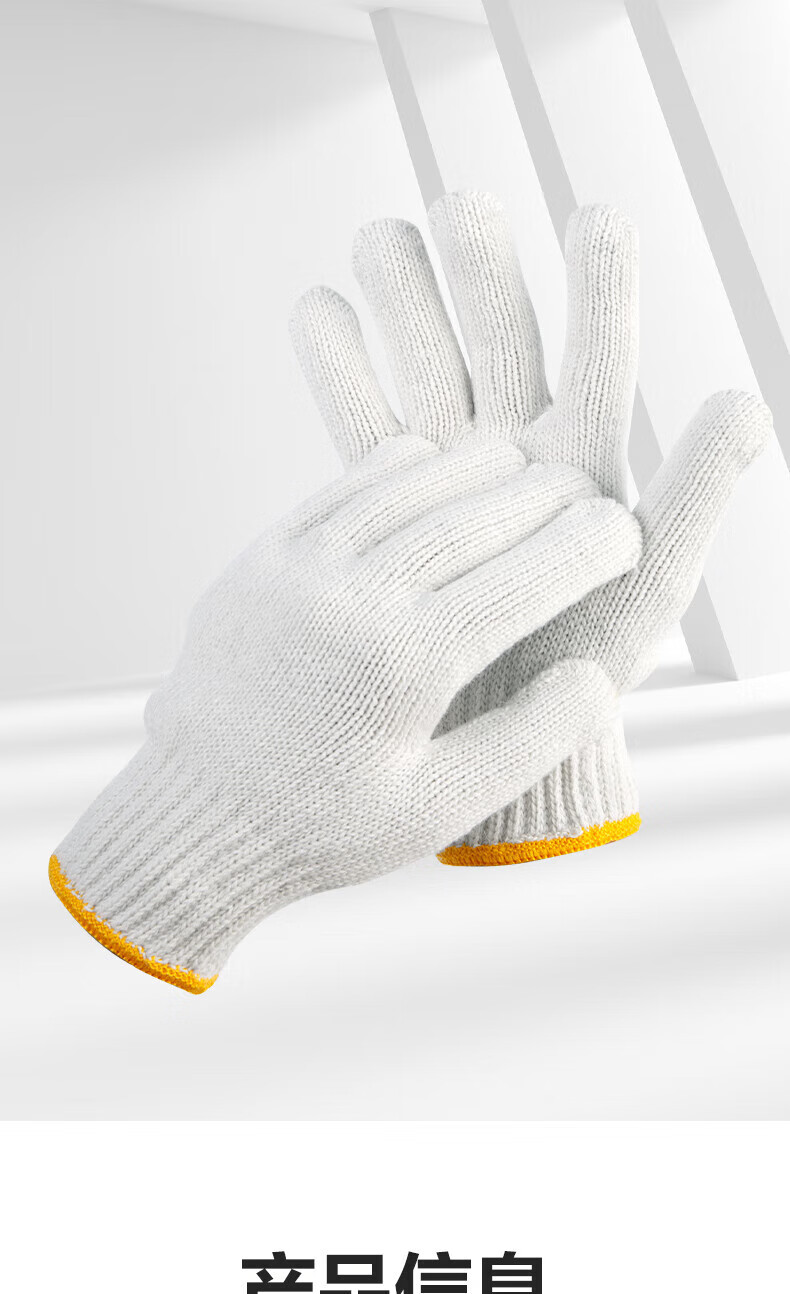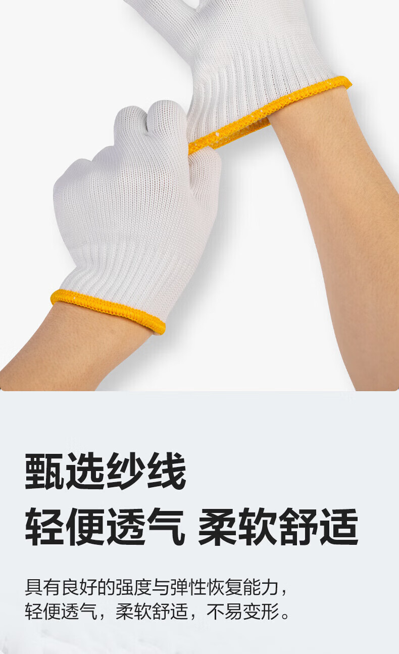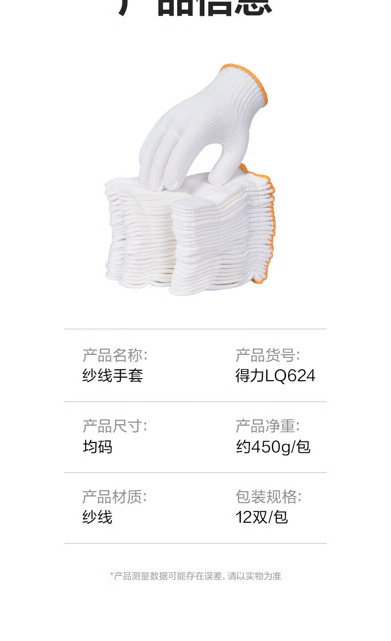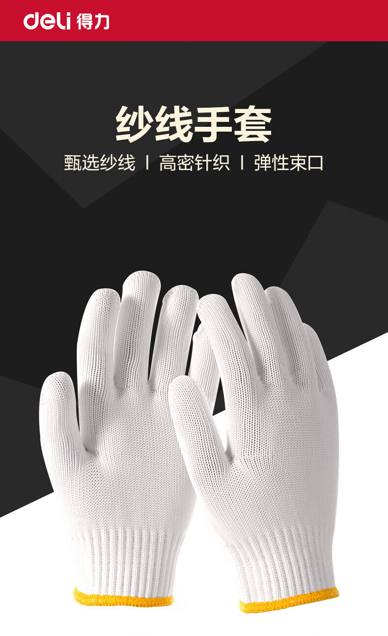 得力/deli LQ624 防滑手套 得心纱线手套劳保耐磨防护手套防滑均码白色(12双/包)1包装