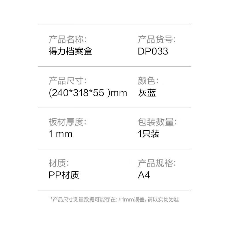 包装清单  :   55mm加厚型档案盒 DP033 灰蓝 个