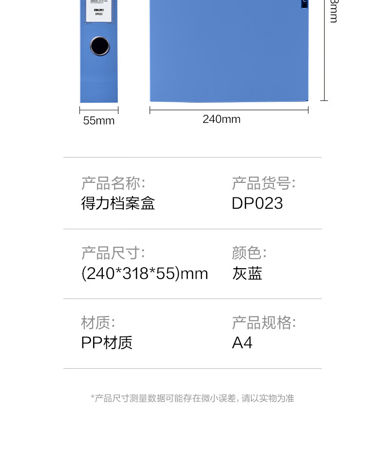 得力/deli DP023 档案盒 55mm标准型 蓝色 1个