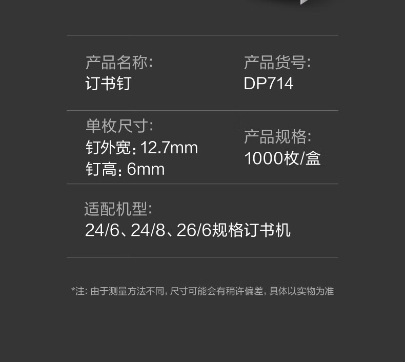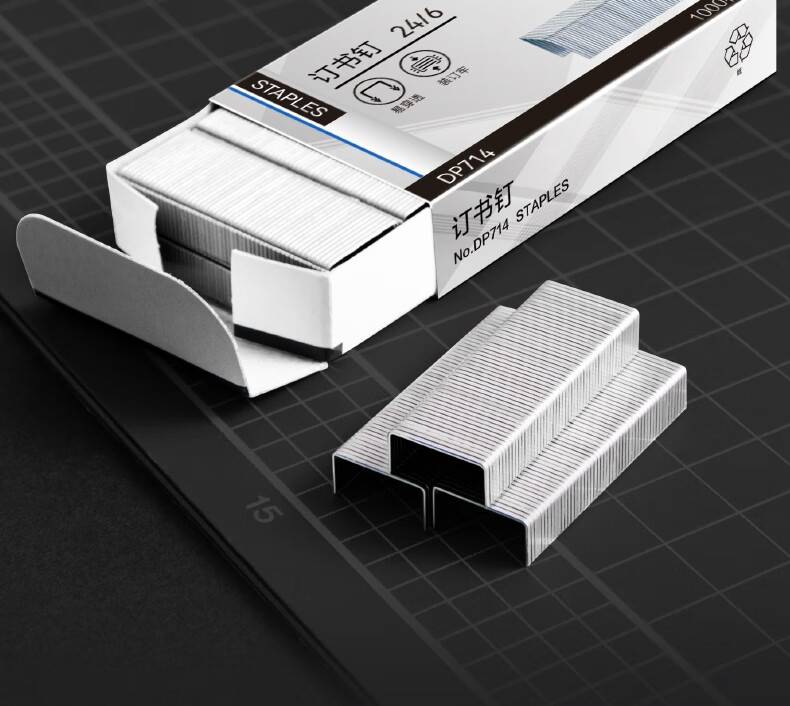 包装清单  :   订书钉12# DP714 银 1000枚/盒