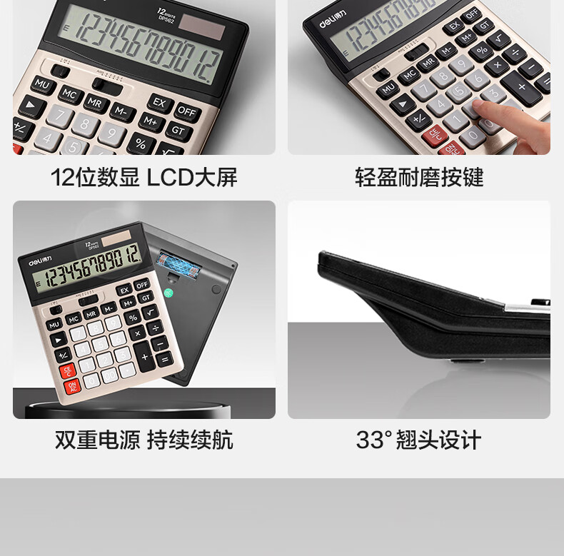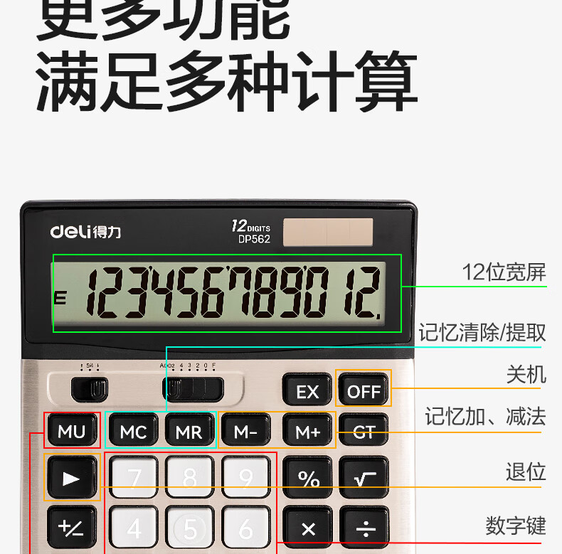 得力/deli DP562 电子计算器 12位香槟金 1台