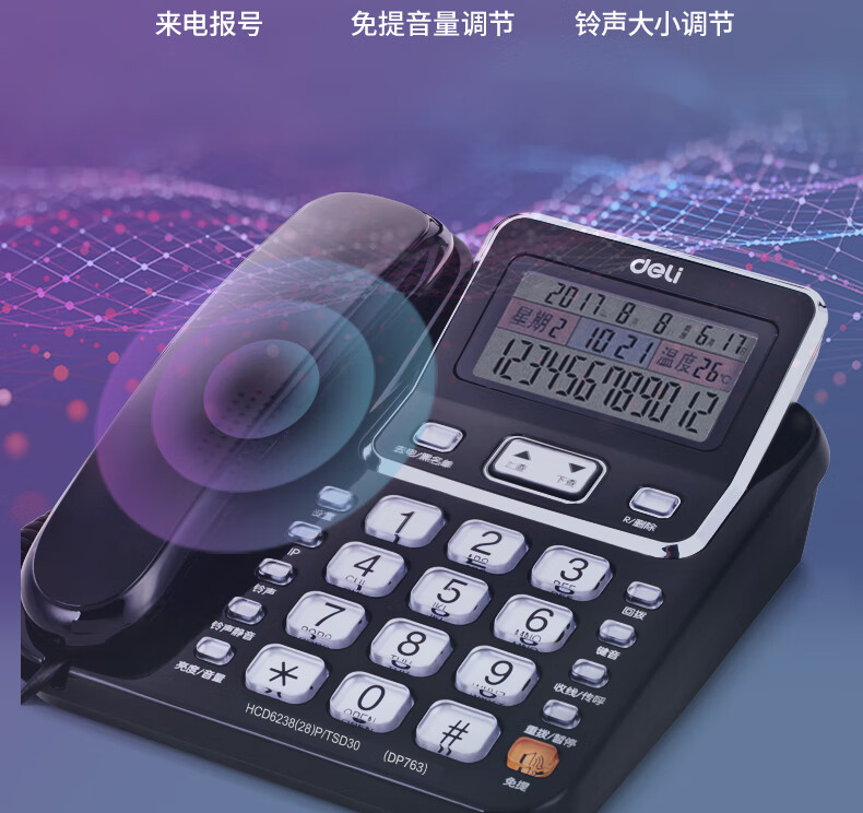 得力/deli DP763 普通电话机 来电显示 黑色 1台