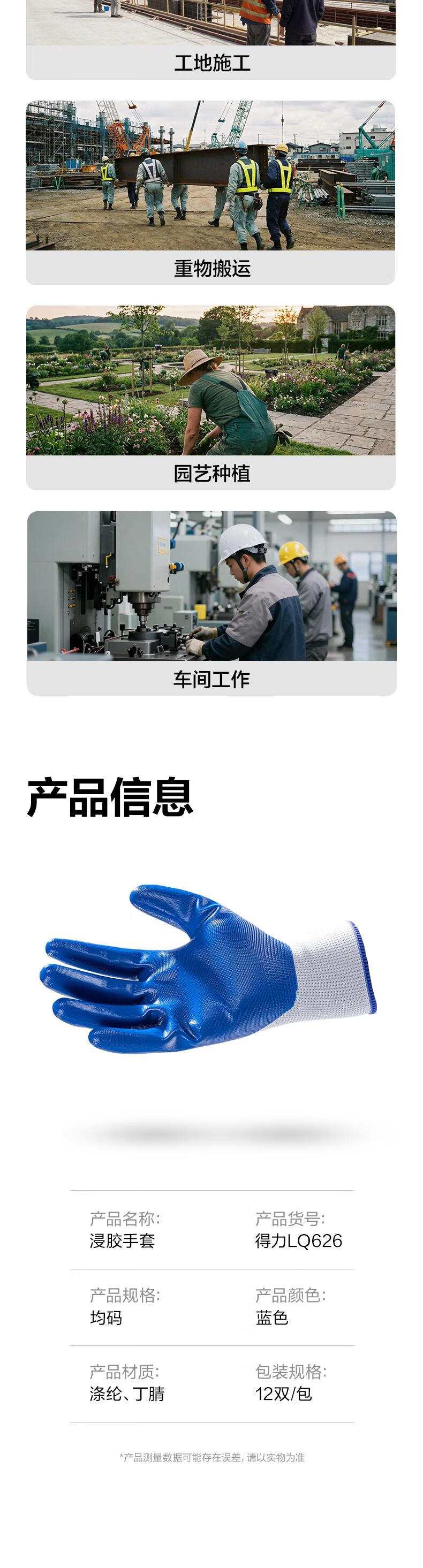 得力/deli LQ626 防滑手套 (均码)(蓝色)(12双/包)