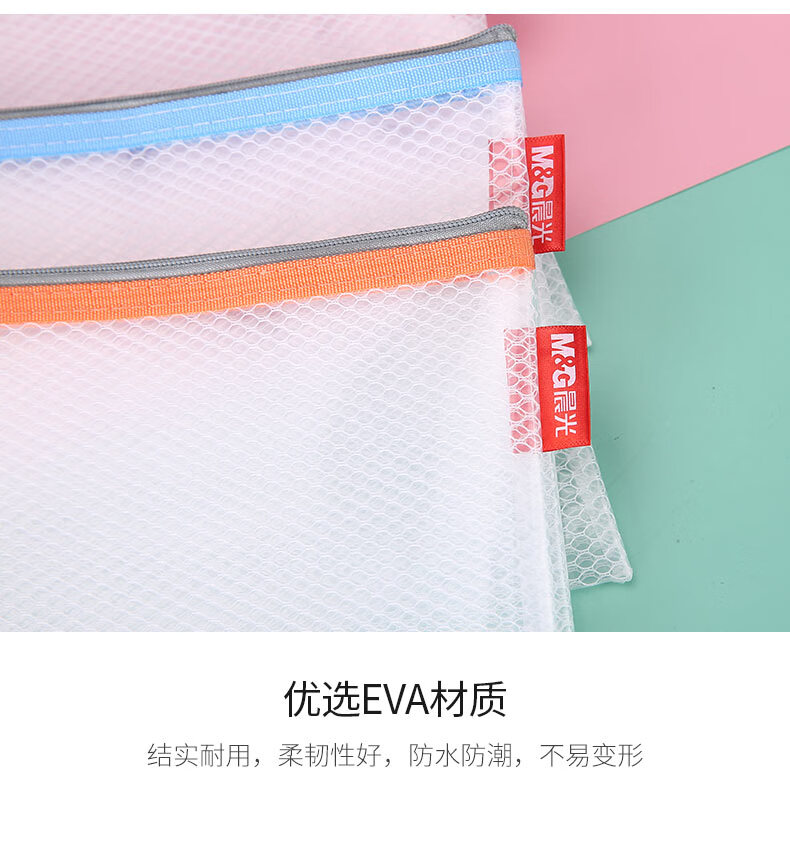 晨光/M&G ADM95077 文件袋 B5文件袋资料袋 网格拉链袋 办公文件学生试卷票据收纳袋 (白橙黄蓝)颜色随机