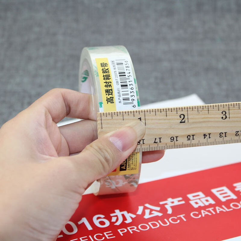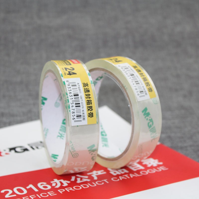 产品材质  :   高透封箱胶带打包封箱办公快递低噪音办公用品 AJD99554(24mm*40y 单卷)