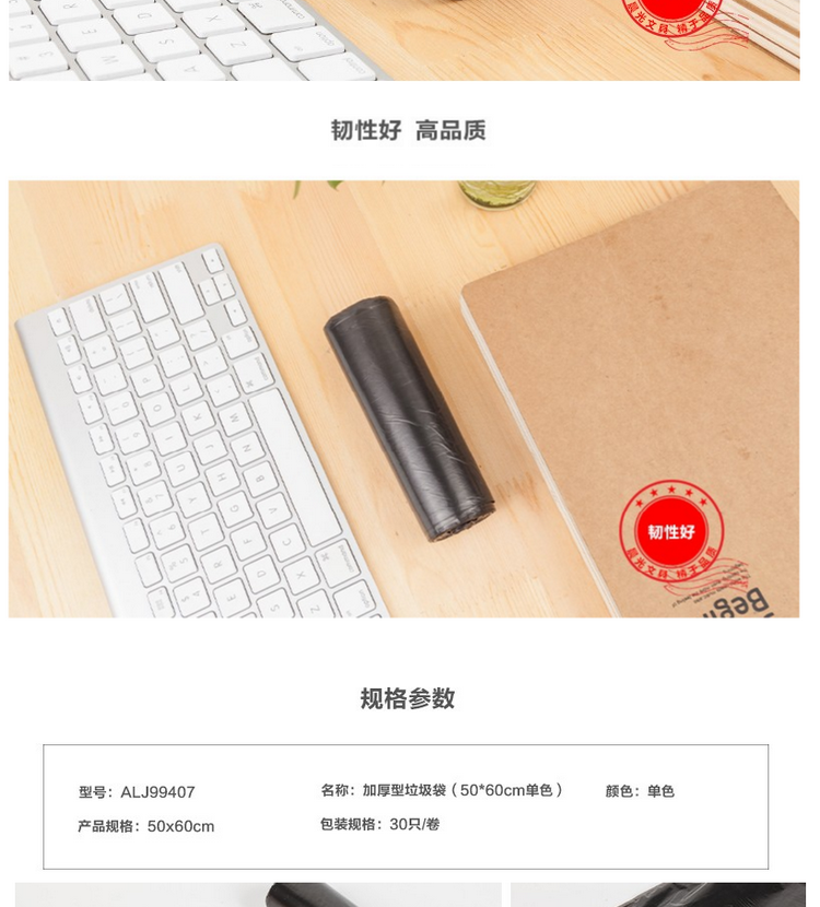 用途  :    垃圾袋清洁袋办公加厚型单卷30个