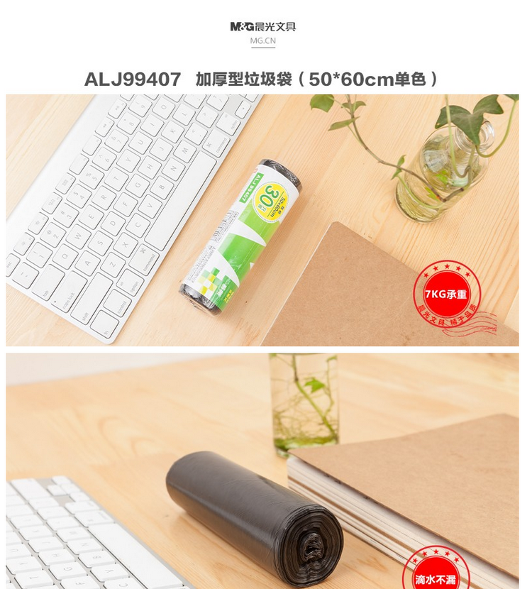 晨光/M&G ALJ99407 塑料制品 垃圾袋清洁袋办公加厚型50*60cm单卷30个装垃圾袋