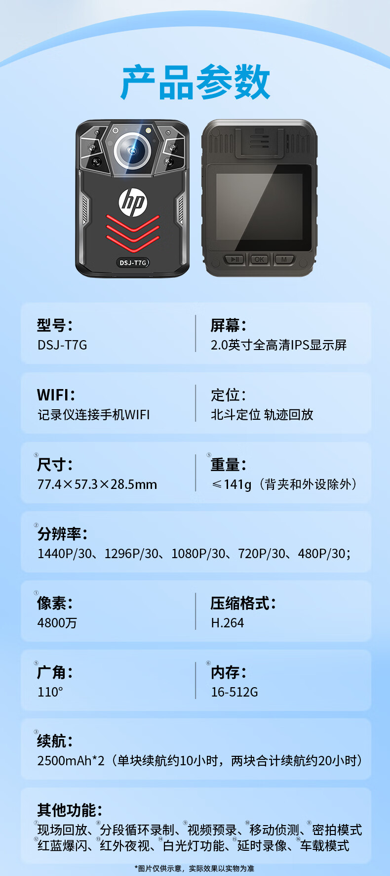 惠普/HP DSJ-T7G 通用无线电通信设备 执法记录仪高清现场记录仪 防爆款 主机+16G