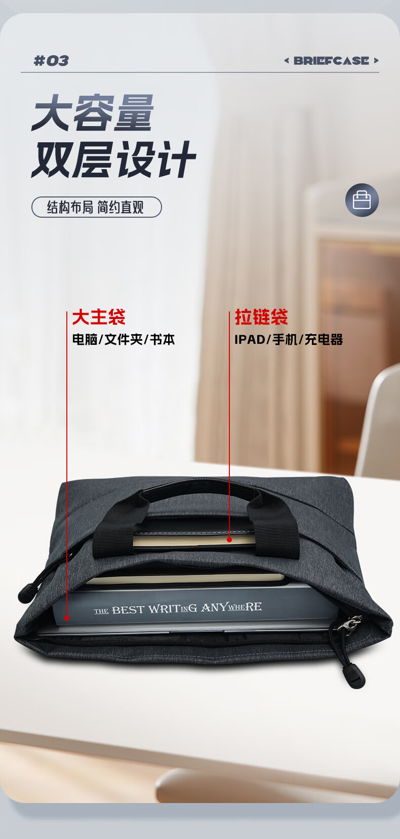 包装清单  :   灰色加厚手提式会议包 商务公文拉链袋事务包 单个装