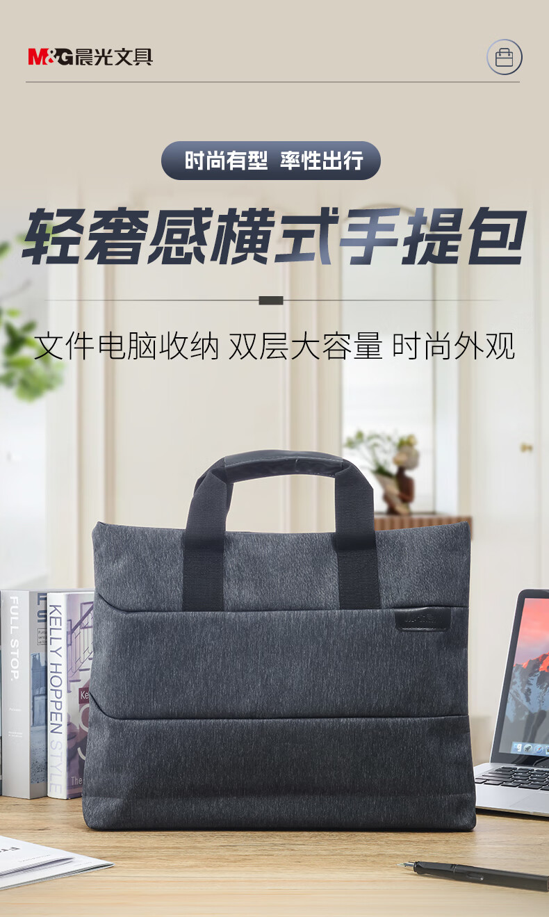 晨光/M&G ABB93184 收纳包 灰色加厚手提式会议包 商务公文拉链袋事务包