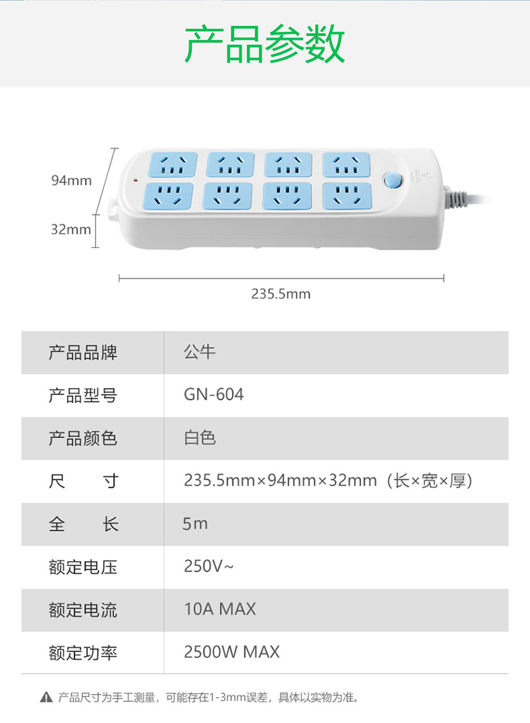 包装清单  :   超功率保护插座/插线板/插排/排插/接线板/拖线板 8位总控全长5米
