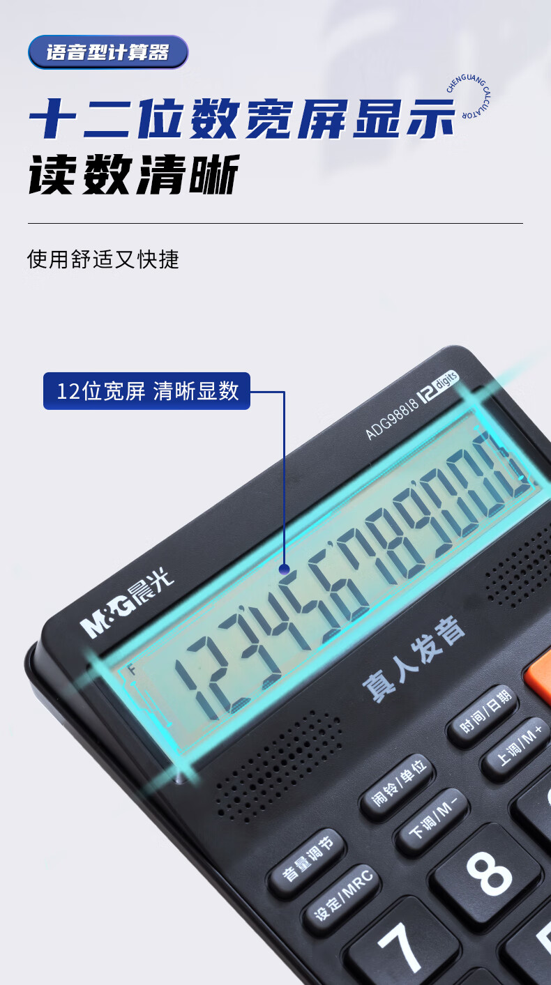 晨光/M&G ADG98818 电子计算器 语音型计算器 818冲锋号桌面计算机 学生/办公通用12位大屏幕计算器 黑色单个装