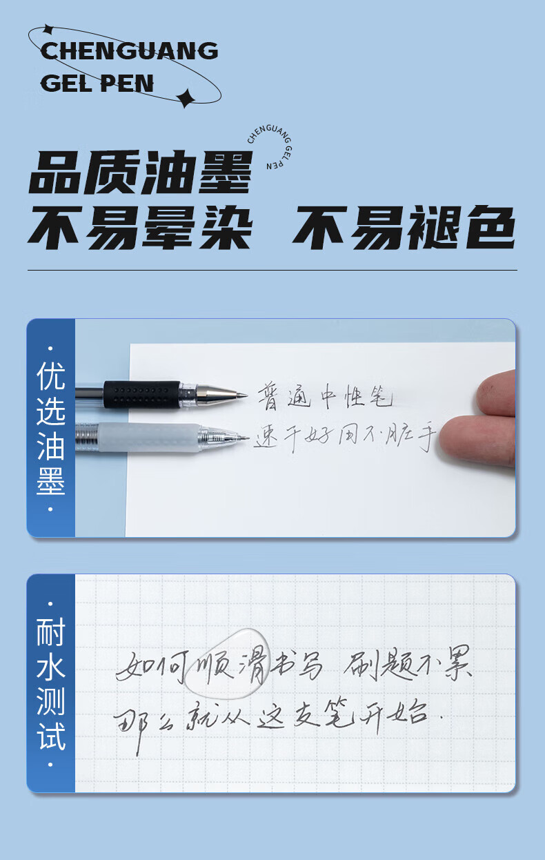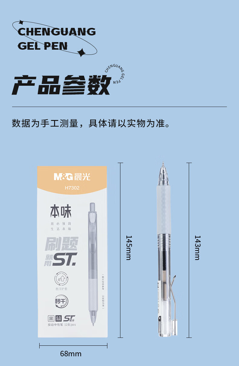 包装清单  :   悬浮护套0.5mm黑色按动中性笔ST头速干签字笔学生考试练字水笔 单支