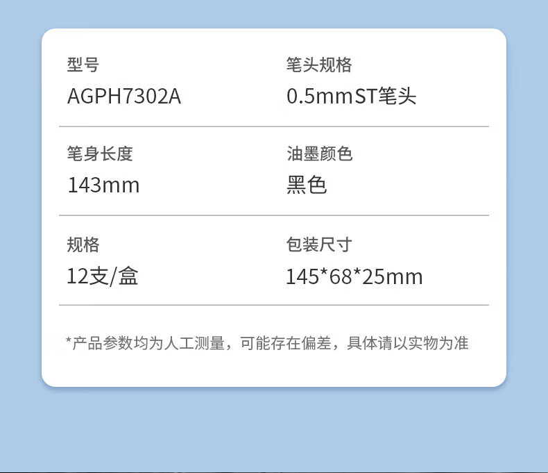 晨光/M&G AGPH7302A 书写用笔类用具 悬浮护套0.5mm黑色按动中性笔ST头速干签字笔学生考试练字水笔 单支
