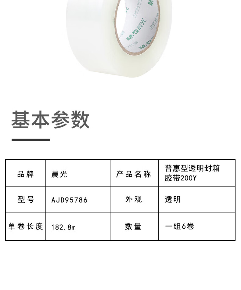 包装清单  :   48mm*200y透明封箱胶带打包胶带大胶布高透明封箱胶布胶条AJD95786 6卷装