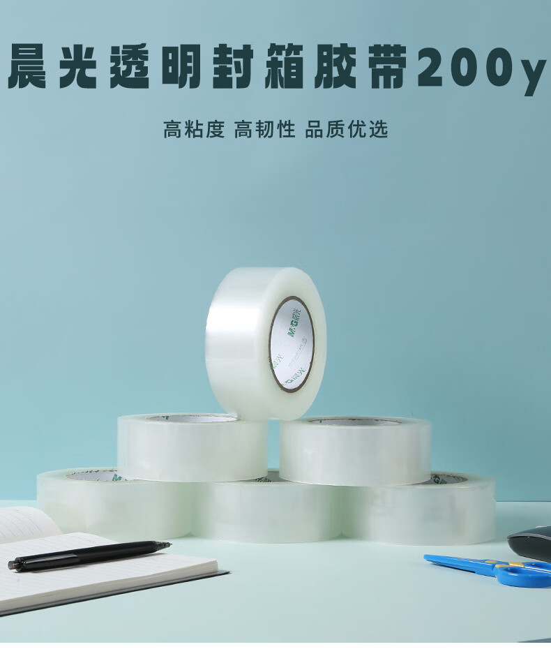晨光/M&G AJD95786 胶带 48mm*200y透明封箱胶带打包胶带大胶布高透明封箱胶布胶条AJD95786 6卷装