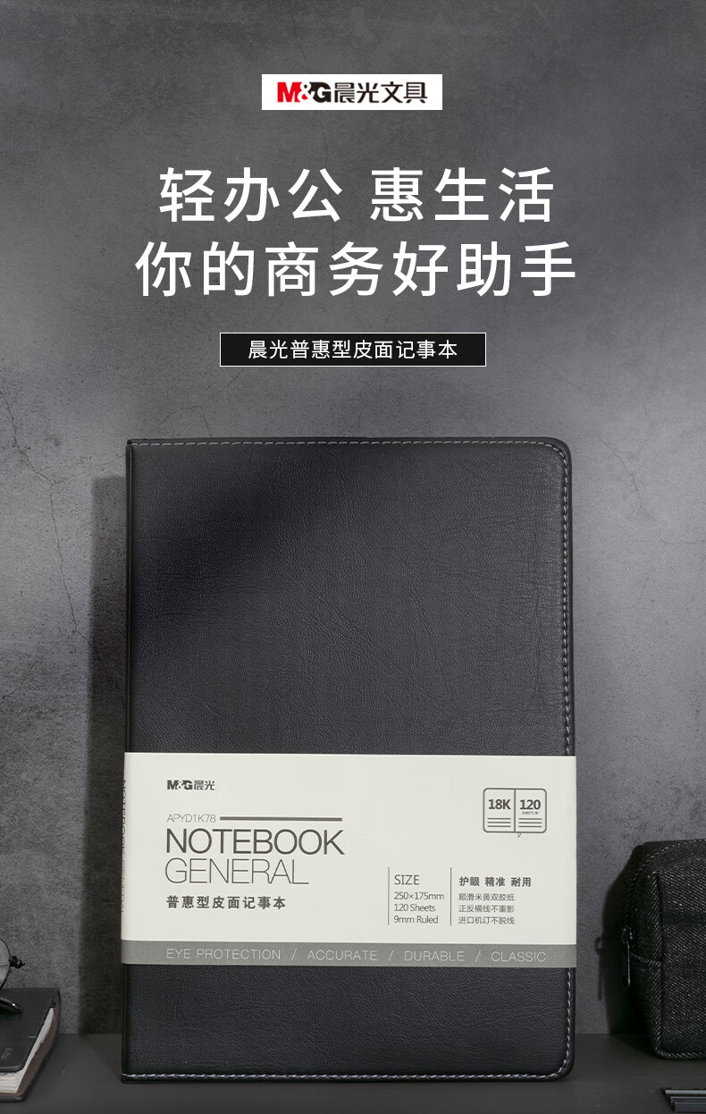 晨光/M&G APYD1K78A 薄本册 18K/120页黑色办公笔记本会议记录皮面本日记本商务记事本子APYD1K78A 1本装