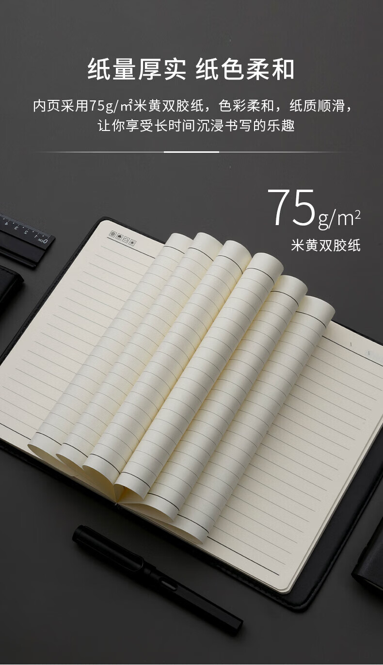 包装清单  :   18K/120页黑色办公笔记本会议记录皮面本日记本商务记事本子APYD1K78A 1本装