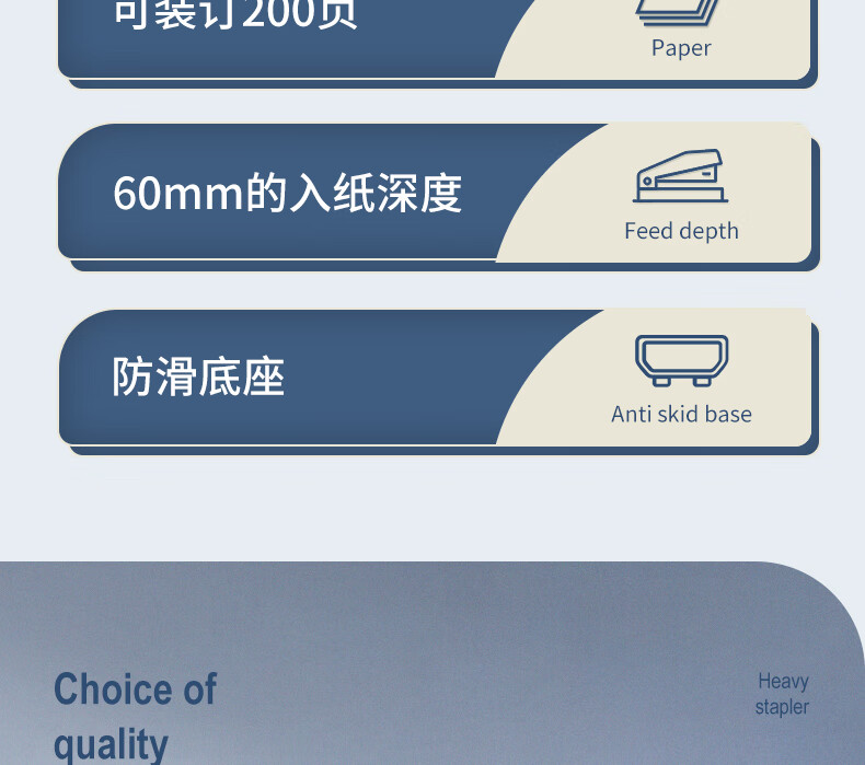 包装清单  :   200页重型订书机/订书器 适配23/6~23/23订书钉 办公用品 单个装