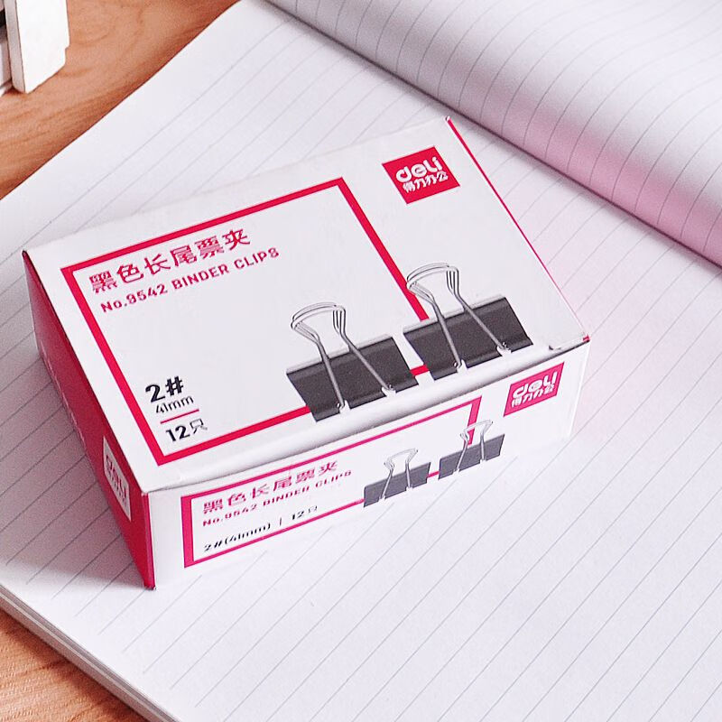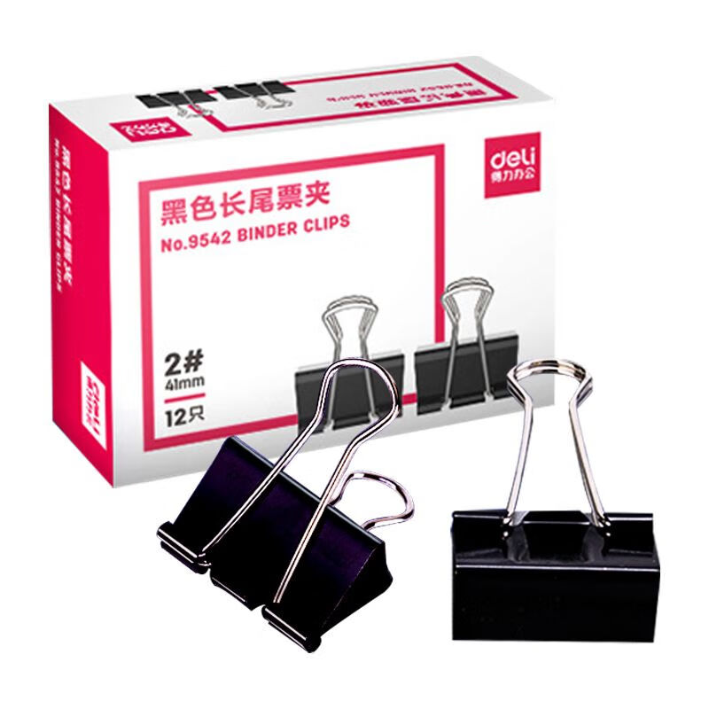 得力/deli 9542 长尾夹 黑色票夹 燕尾夹41mm 铁票夹 铁夹子 41mm 12只/盒 黑色