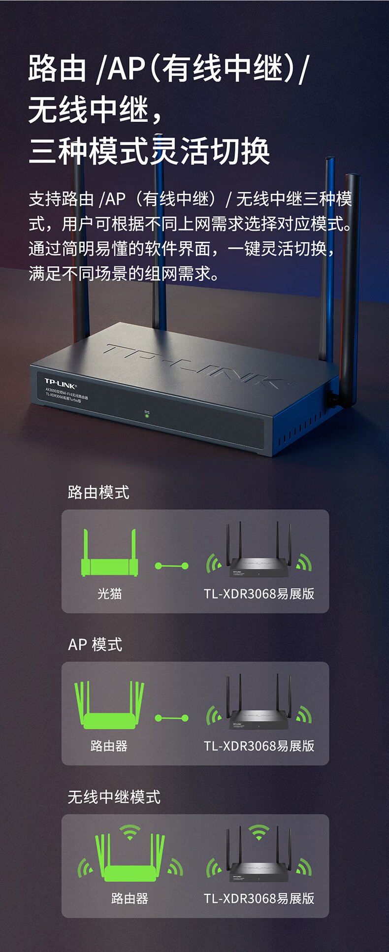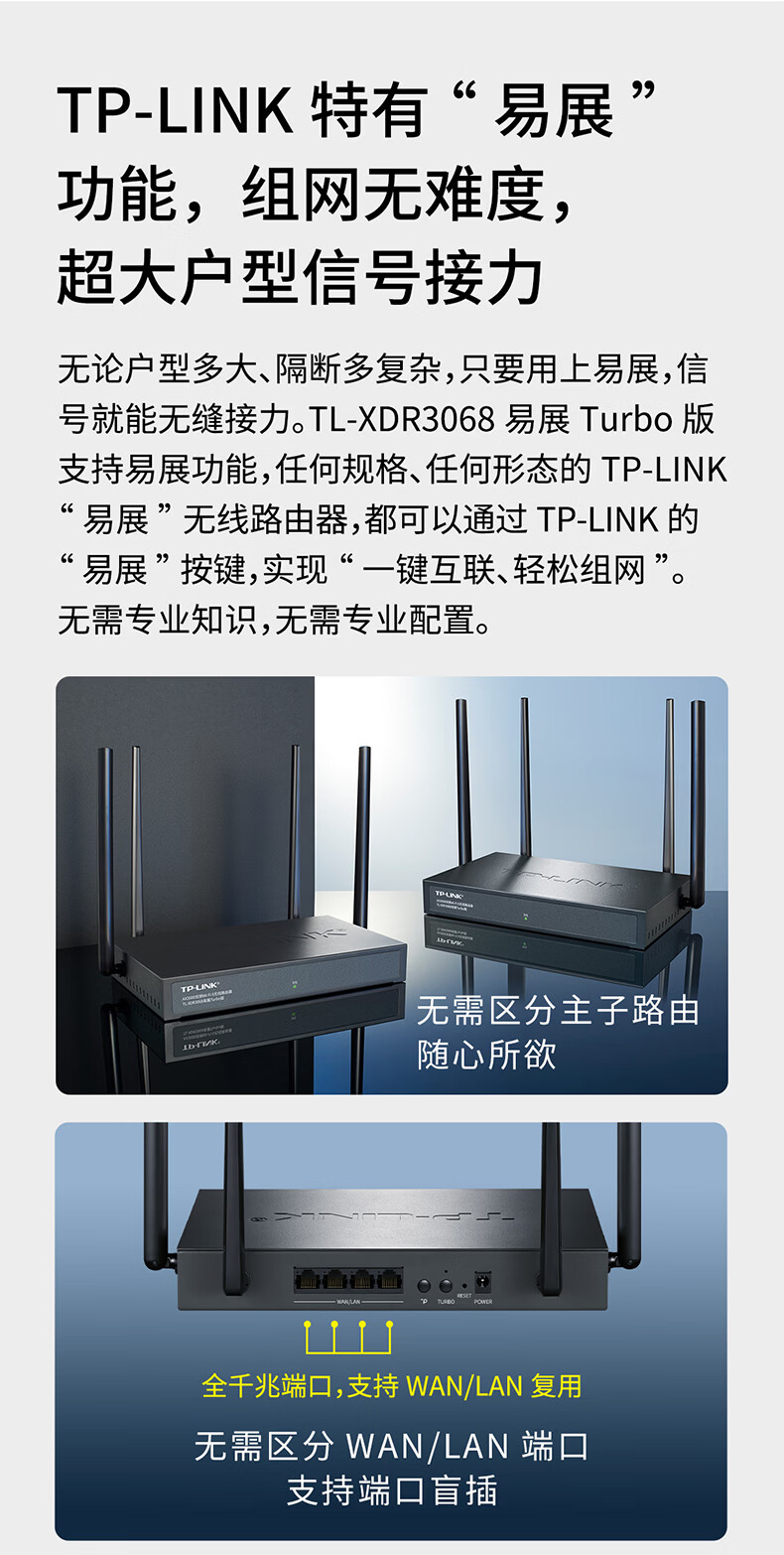 包装清单  :   WiFi6 AX3000全千兆企业路由器 千兆端口家用高速wifi tplink XDR3068 AX3000金属壳体