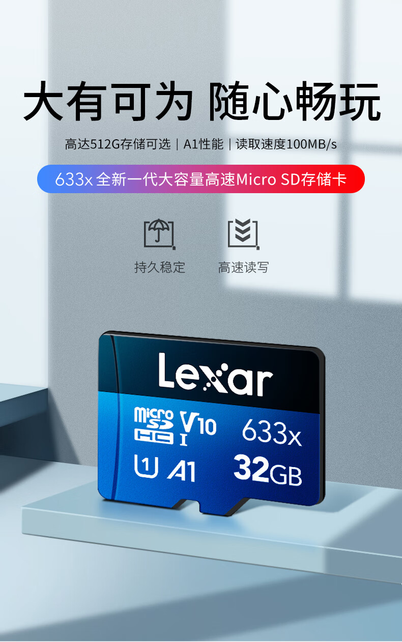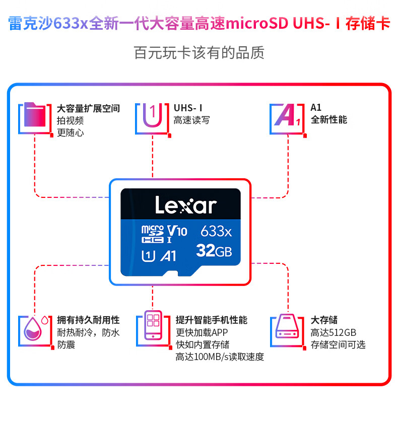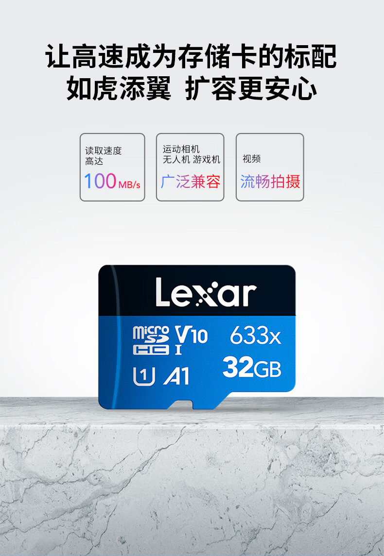 雷克沙/Lexar 633x U盘/存储卡 32GB TF(MicroSD)存储卡 C10 U1 V10 A1 高速内存卡 读速100MB/s
