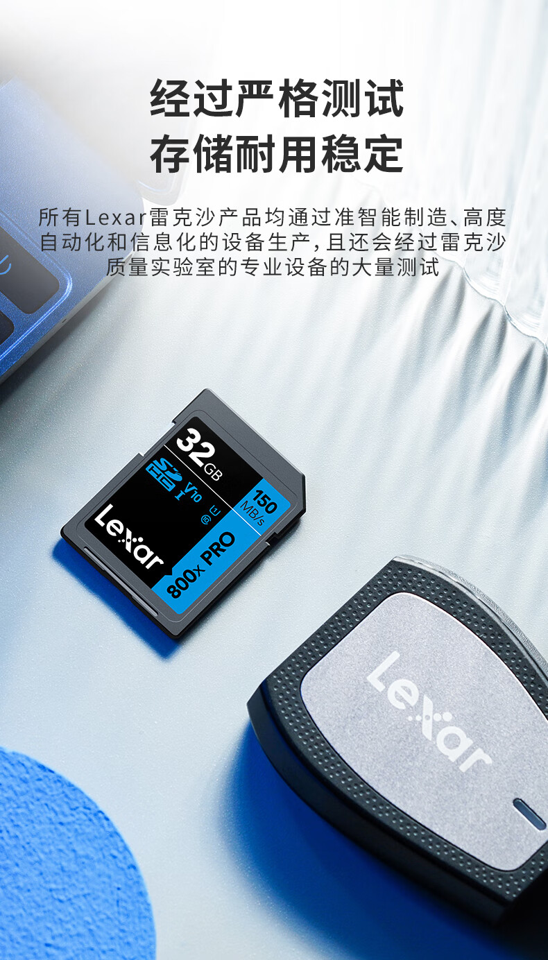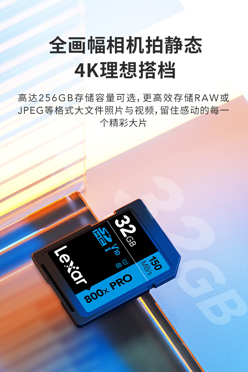 雷克沙/Lexar 800x PRO U盘/存储卡 32GB SD存储卡 读150MB/s U1 V10 入门相机内存卡 高速性能 随心畅拍