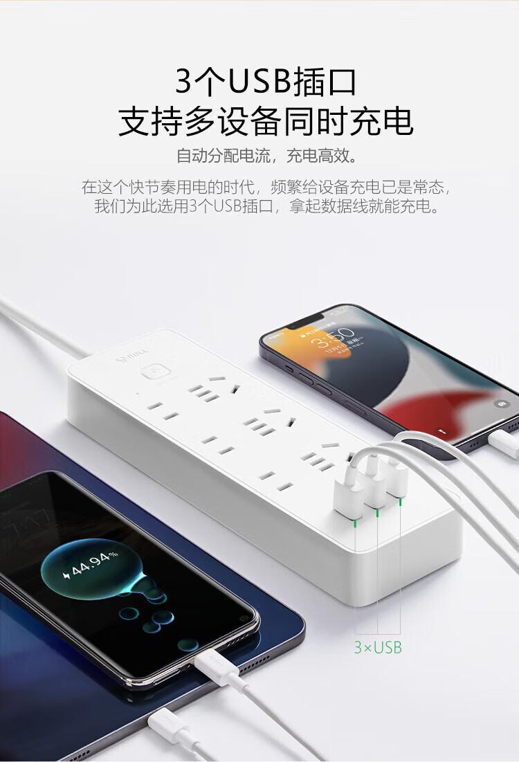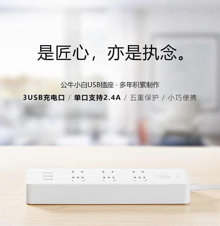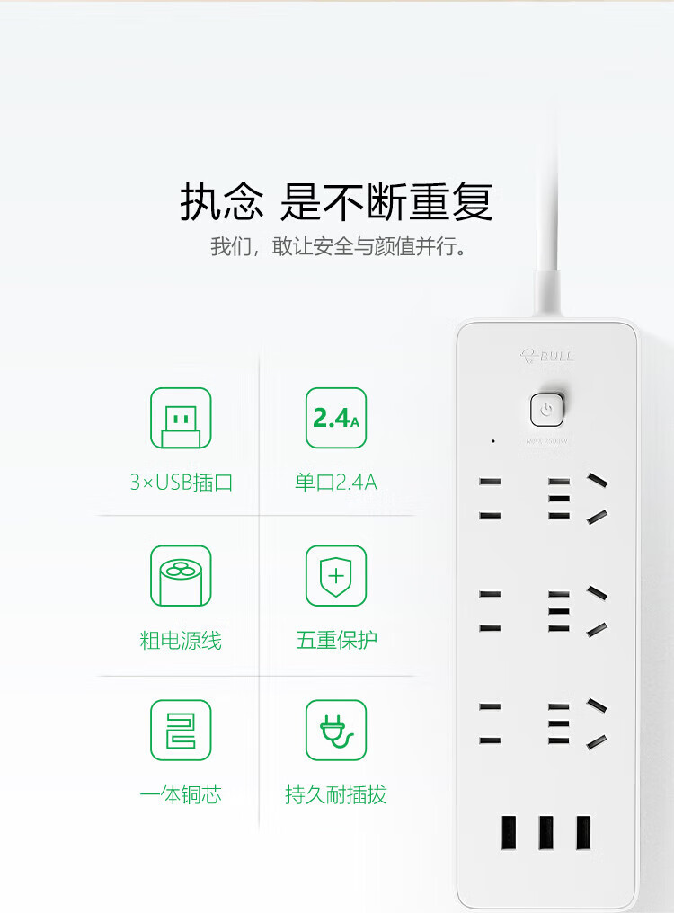 公牛/BULL GNV-UUB126 插座 新国标公牛小白USB插座/插线板/插排/排插 3USB+6位总控全长3米