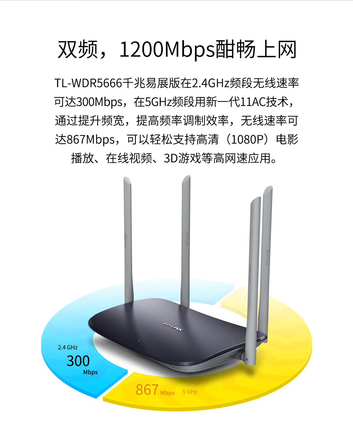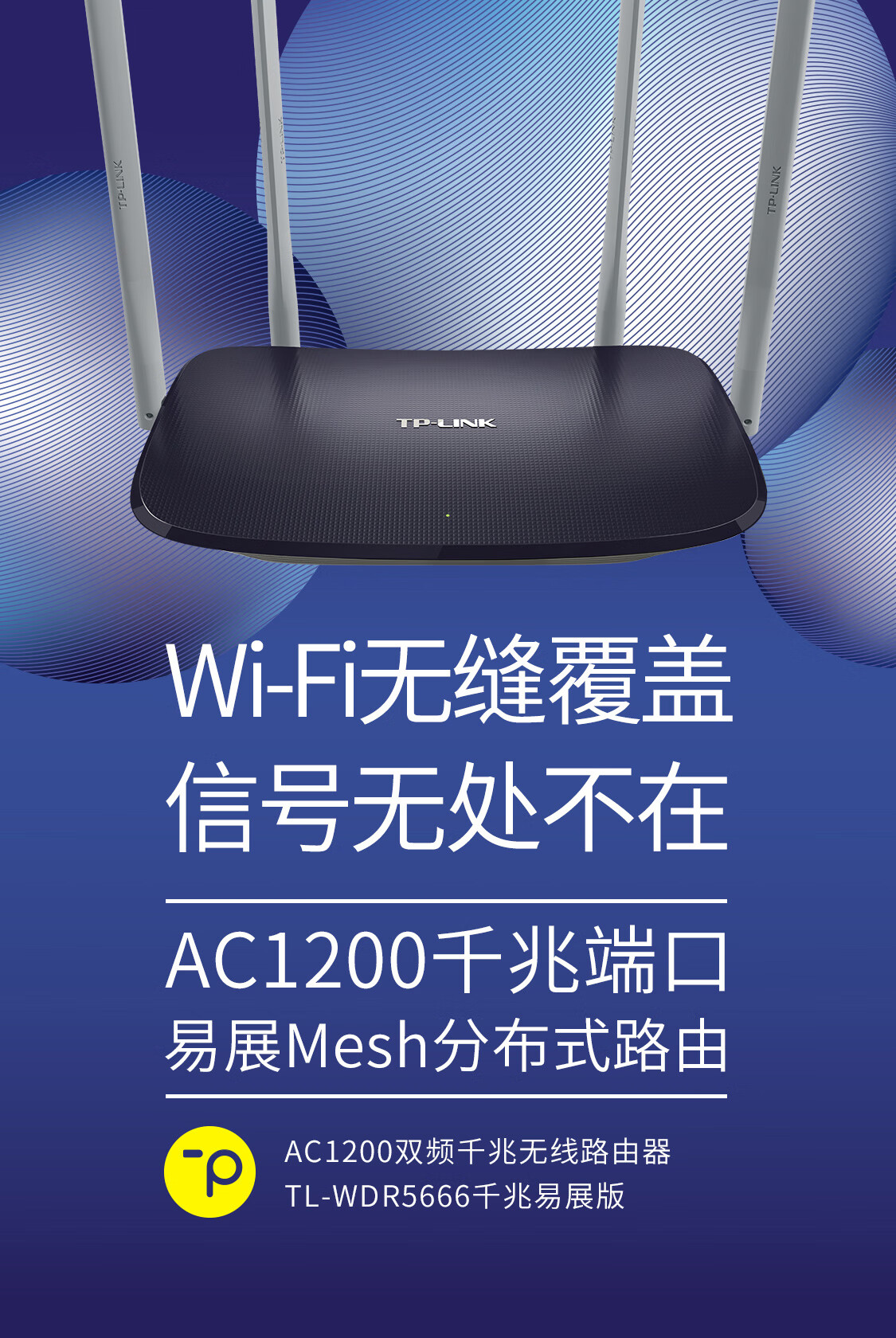 普联/TP-LINK WDR5666 路由器 AC1200全千兆无线路由器 5G双频高速穿墙WiFi mesh易展分布 WDR5666千兆易展版