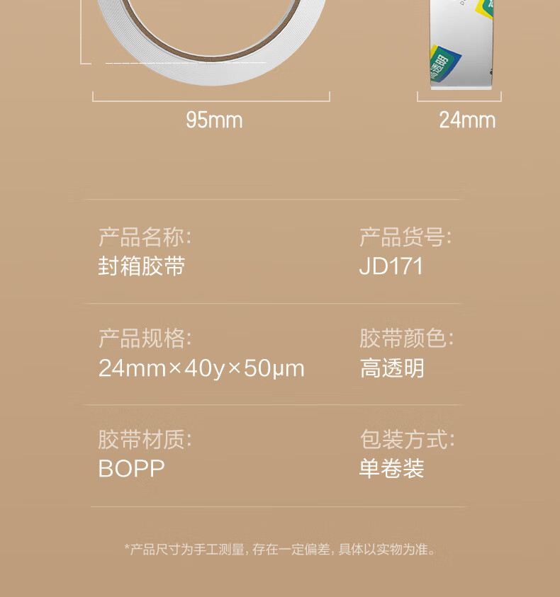产品材质  :   BOPP高品质高透明封箱胶带打包胶带24mm*40y*50um 单卷装