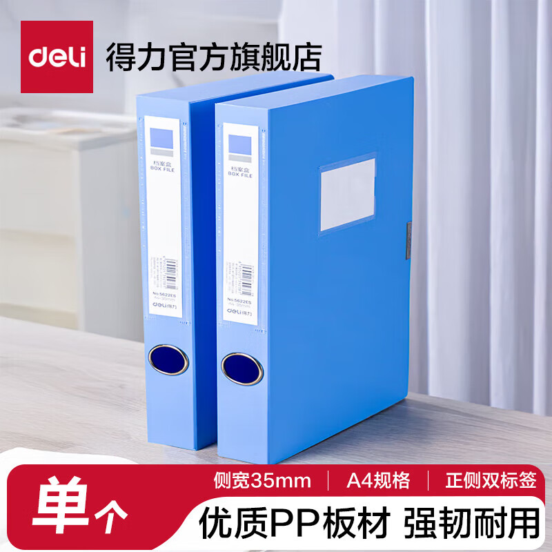 得力/deli 5622ES 档案盒 A4粘扣档案盒塑料文件盒 加厚资料盒 财务凭证考试文件收纳盒 办公用品 35mm背宽纯PP 5622ES 单个装