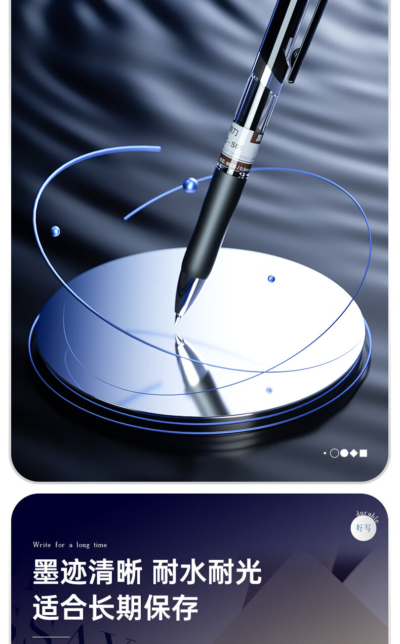 适用范围  :   S01中性笔签字笔 0.5mm经典办公按动笔水笔 黑色 单支