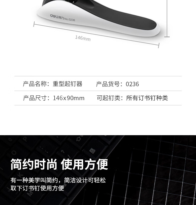 得力/deli 0236 装订及打孔类重型起钉器订书机起钉 适用所有订书钉规格 黑