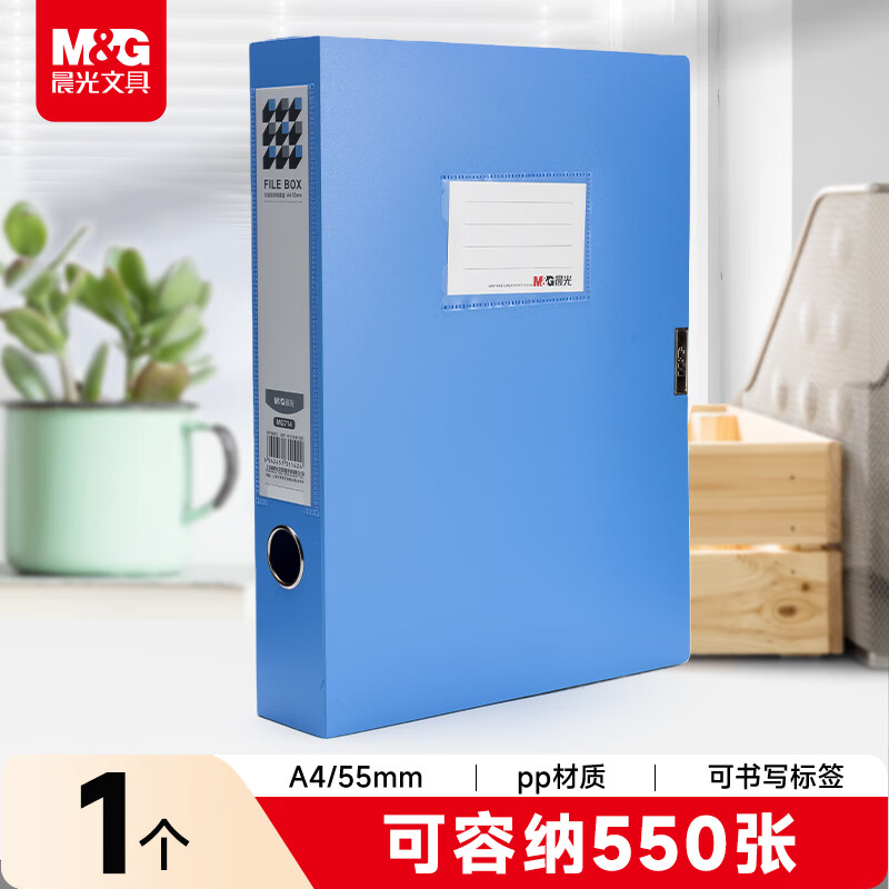 晨光/M&G MG714B 档案盒 55mmA4加厚PP粘扣文件盒档案盒资料盒凭证文件收纳盒办公用品财会行政用品浅蓝色