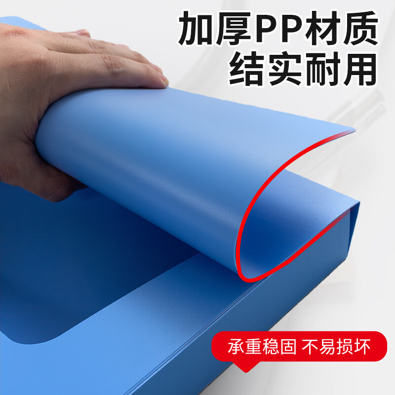 容纸量  :   55mmA4加厚PP粘扣文件盒档案盒资料盒凭证文件收纳盒办公用品财会行政用品浅蓝色