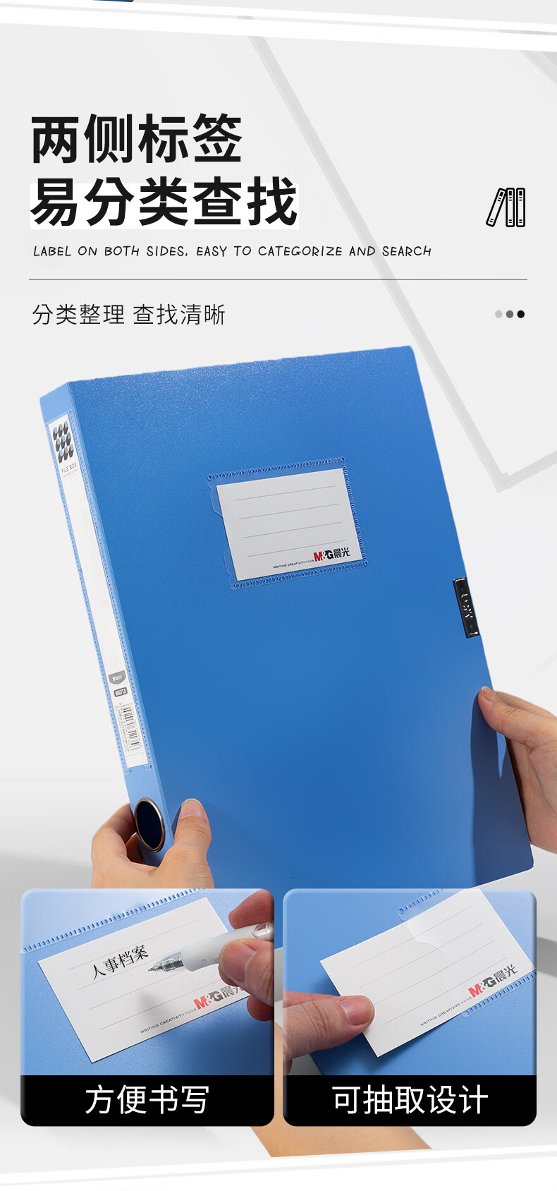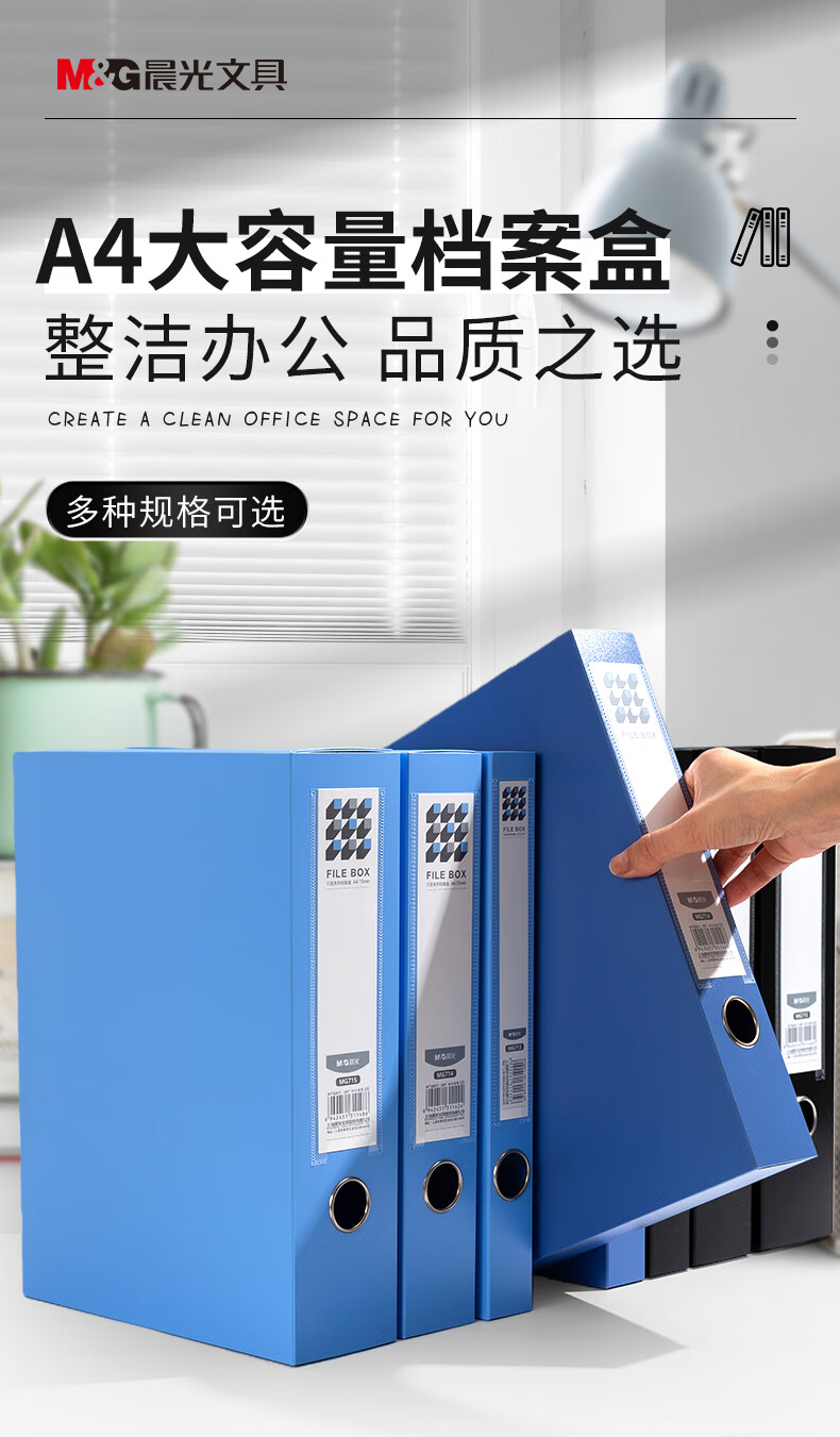 晨光/M&G MG713B 档案盒 35mmA4加厚PP粘扣文件盒档案盒资料盒凭证文件收纳盒办公用品财会行政用品蓝色