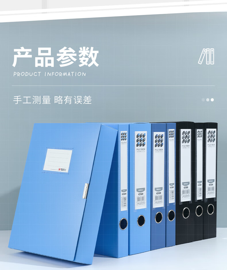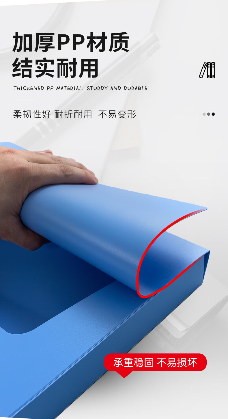 包装清单  :   35mmA4加厚PP粘扣文件盒档案盒资料盒凭证文件收纳盒办公用品财会行政用品蓝色