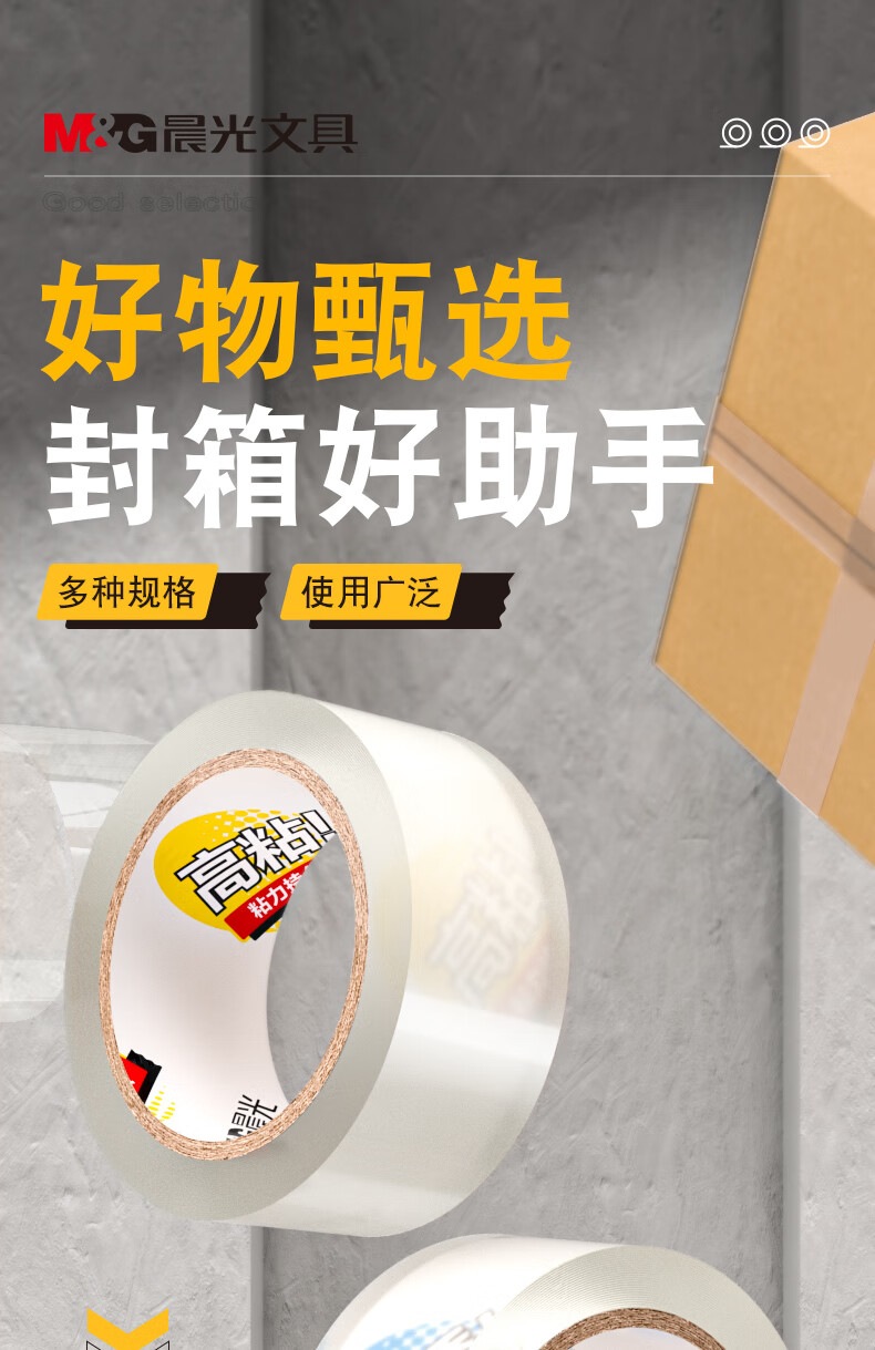 晨光/M&G AJD957DY 胶带 高品质透明封箱胶带/打包胶带 60mm*40y*50μm 单卷装 防台风胶带
