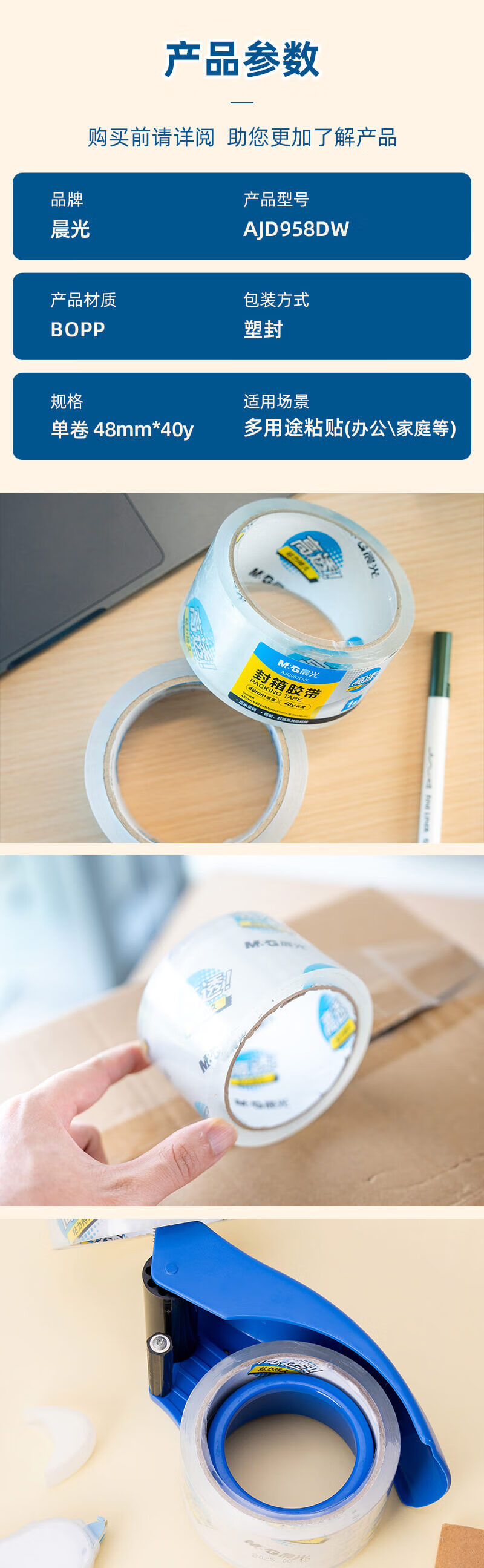 晨光/M&G AJD957DX 胶带 普透封箱胶带透明胶带大胶布 48mm*60y 快递打包办公用品 1卷装