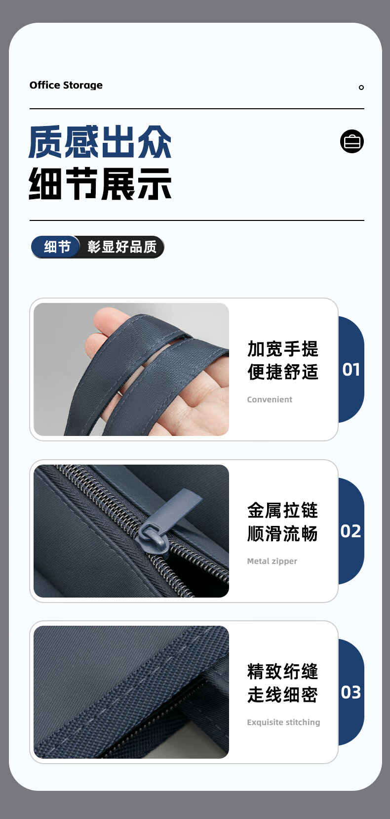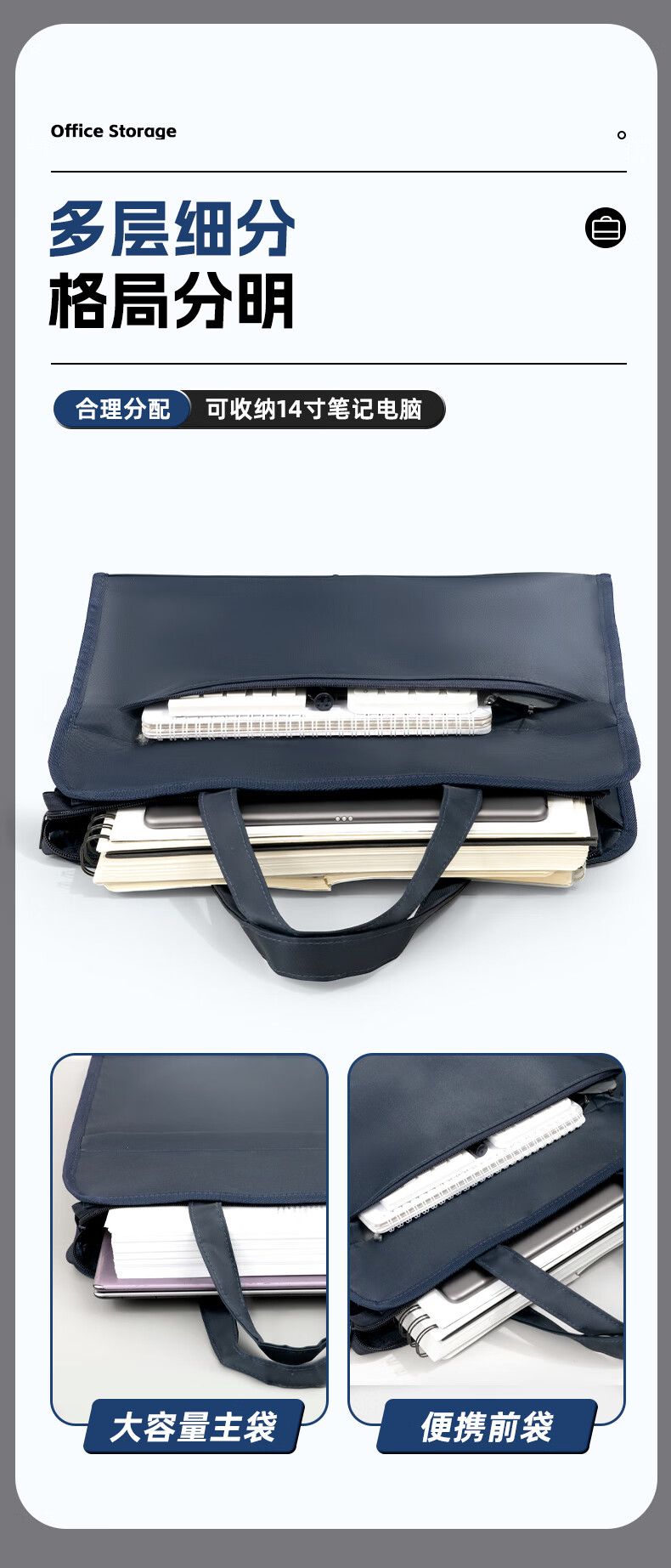 包装清单  :   办公加宽手提袋会议包事务包文件包 加厚大容量商务拉链袋电脑公文包 蓝色