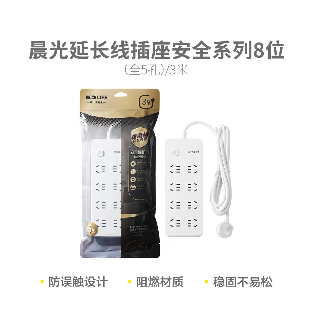 晨光/M&G AEA98699 插座 多孔多用延长线插板 总控开关插座 AEA98699(3米)总控8位(全5孔)