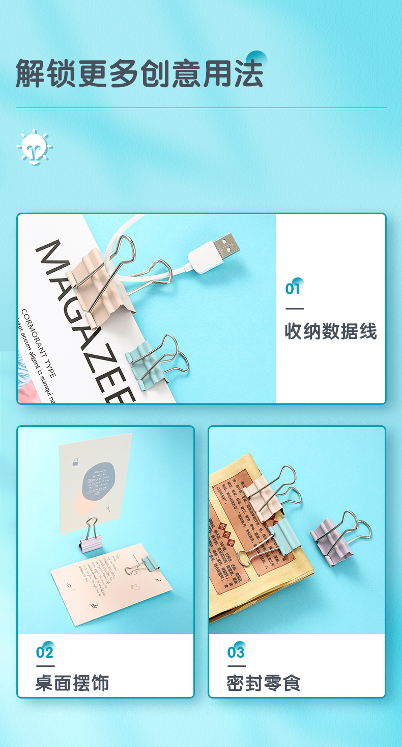 包装清单  :   40只19mm 省力长尾夹票夹 5#彩色金属燕尾夹 莫兰迪系列票据夹子