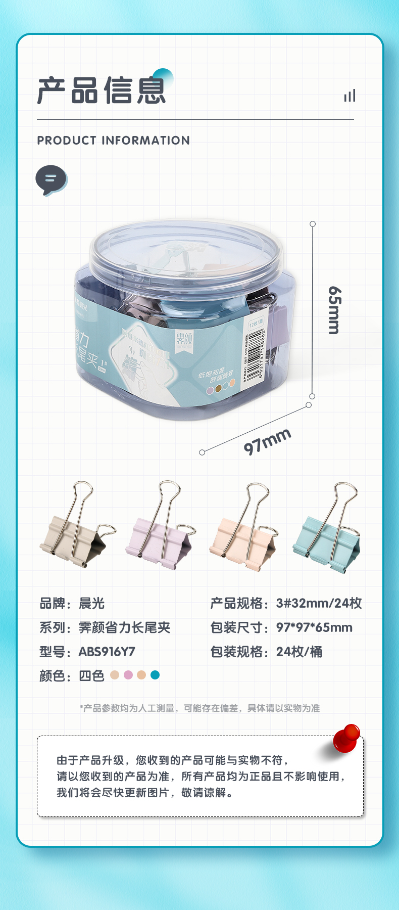 包装清单  :   24只32mm 省力长尾夹票夹 3#彩色金属燕尾夹 莫兰迪系列票据夹子