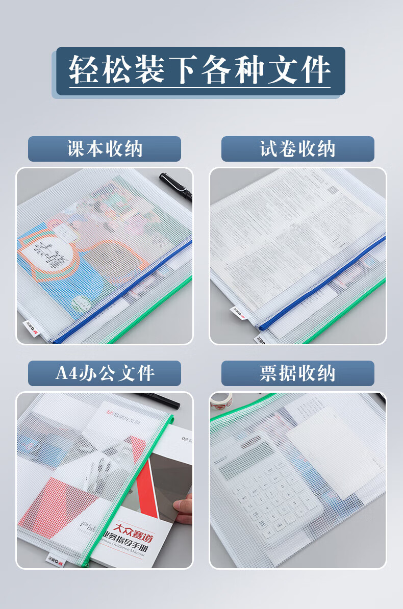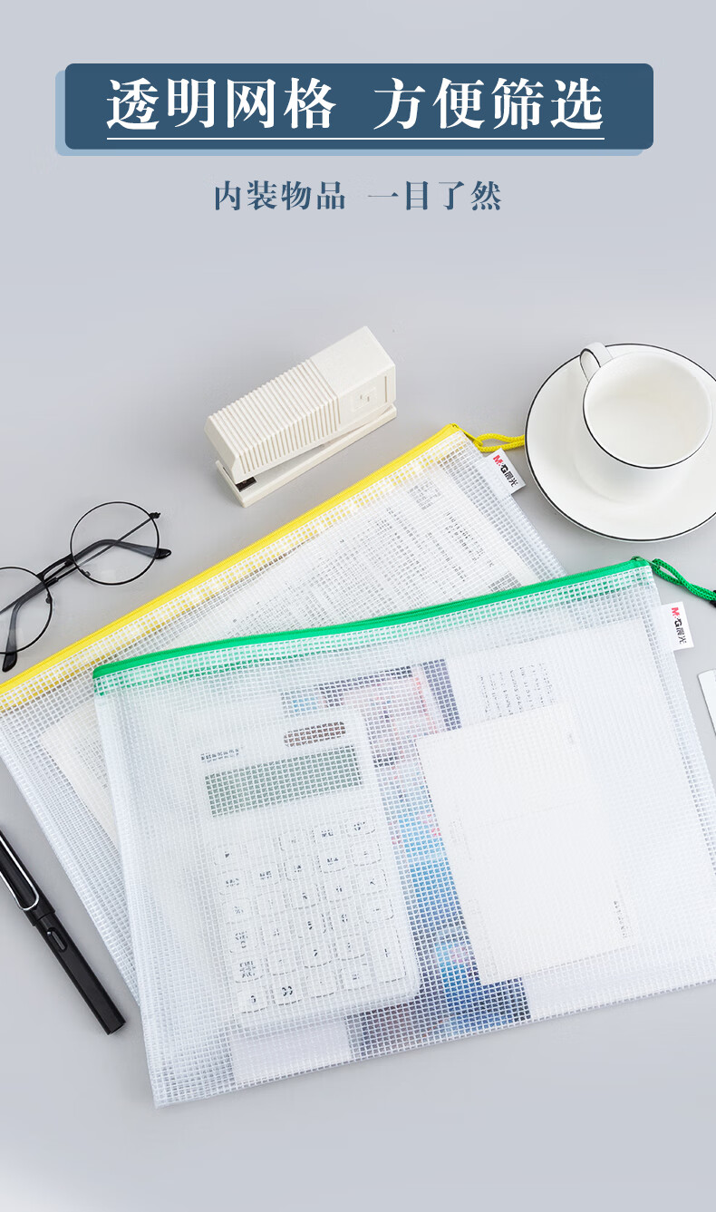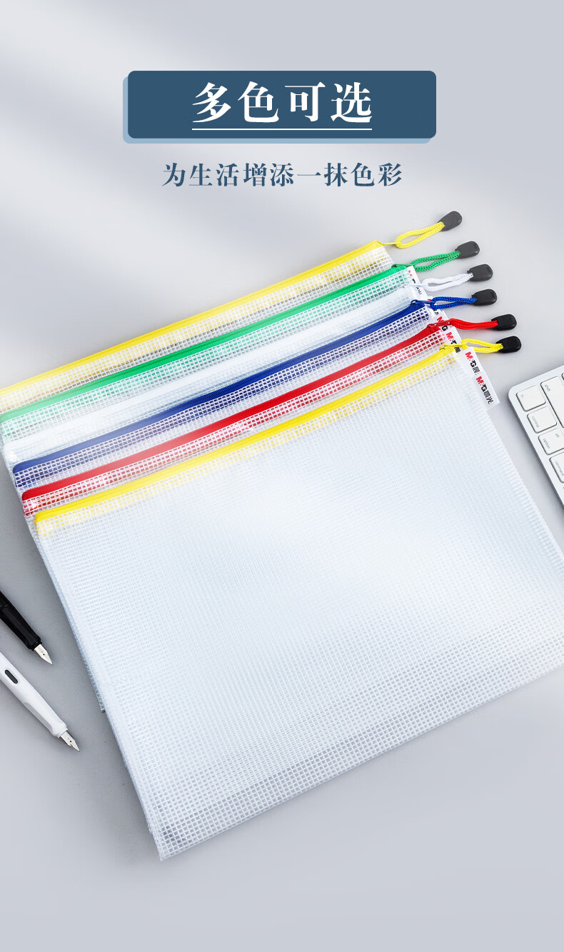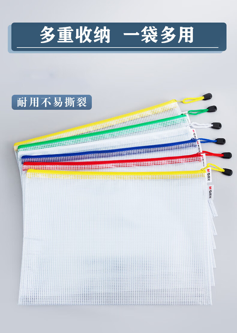包装清单  :   A4网格拉链袋PVC文件袋资料袋学生试卷收纳文件收纳袋颜色随机ADMN4282 10个装