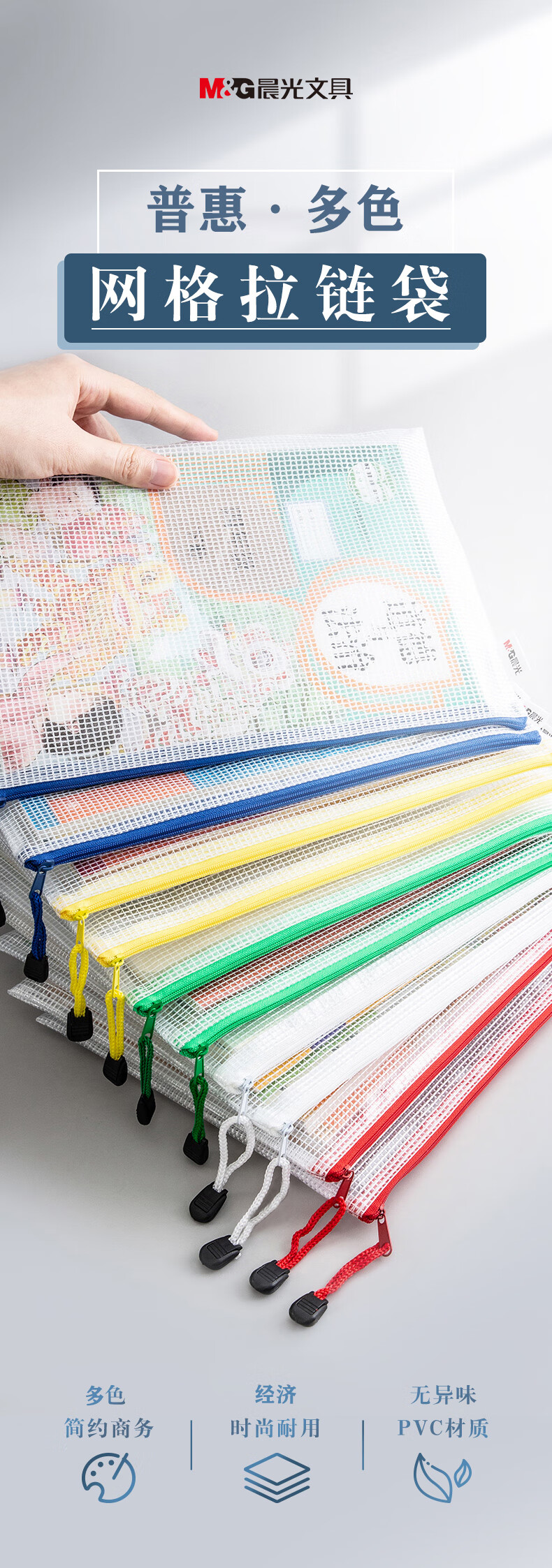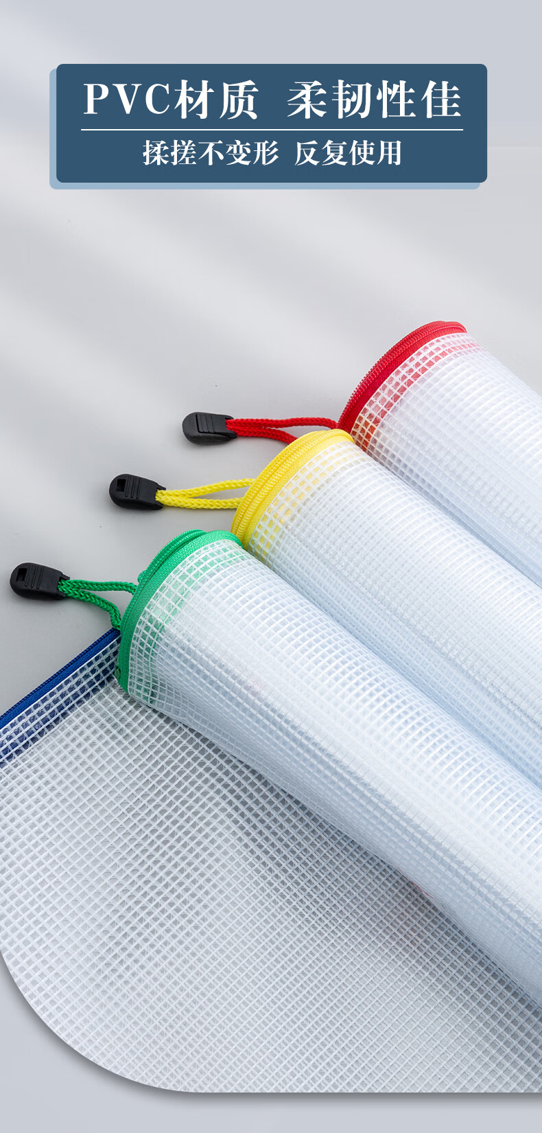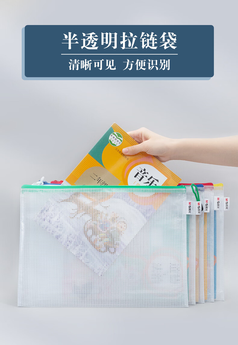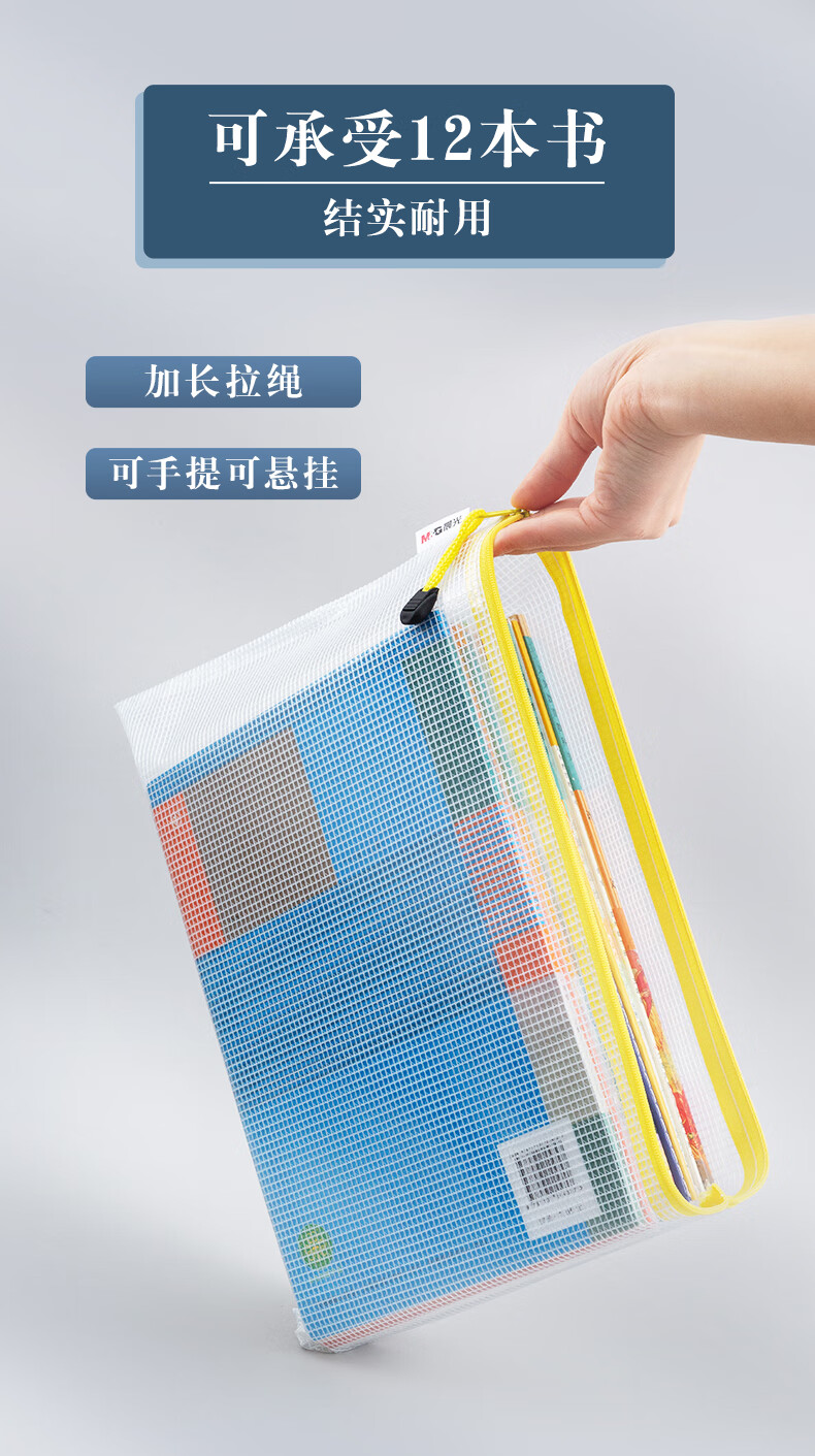 包装清单  :   A4网格拉链袋PVC文件袋资料袋学生试卷收纳文件收纳袋颜色随机ADMN4282 10个装