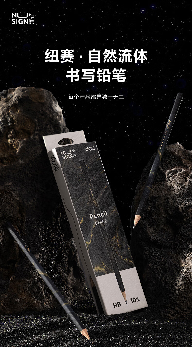 包装清单  :   纽赛自然流体六角杆HB/2B黑木铅笔学生铅笔考试用 NS728-HB自然流体 (混)(10支/盒)