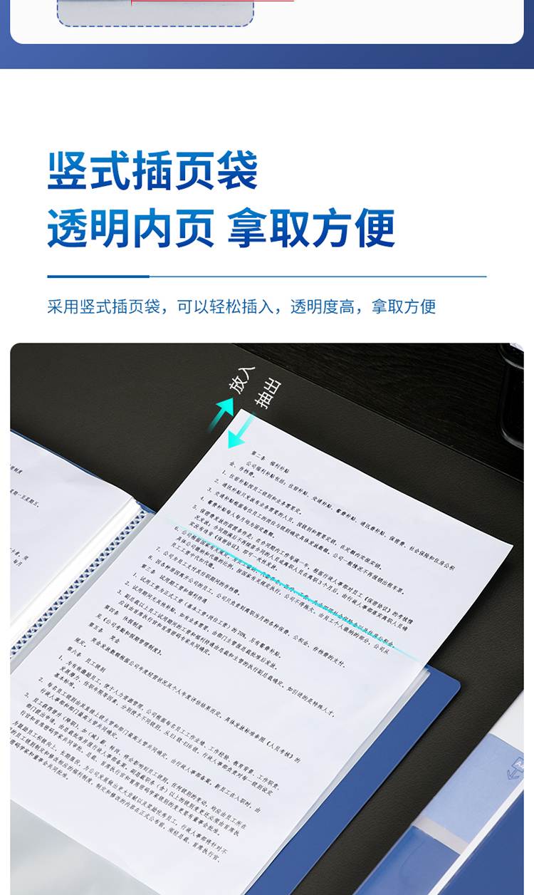 容纸量  :   a4透明插页袋资料收集册文件夹资料夹收纳夹办公用品多层整理塑料档案蓝色 【30页】高档磨砂款