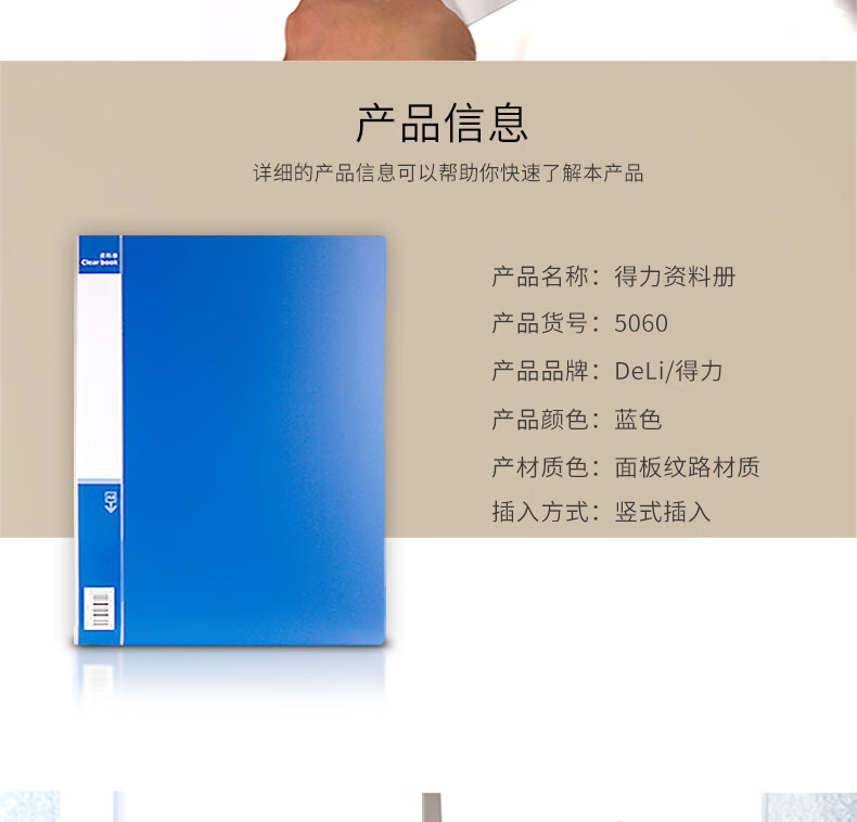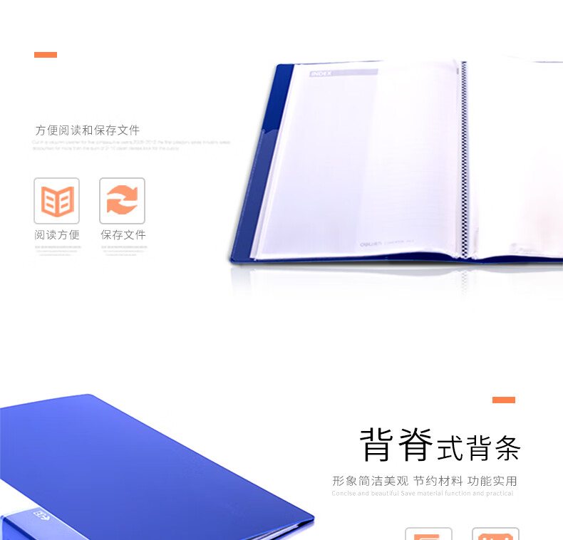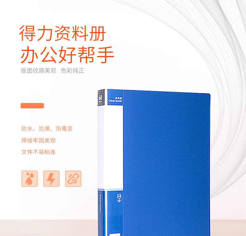 得力/deli 5060 文件夹 A4/60页资料册文件活页收纳册文件夹 插页袋学生试卷收纳袋奖状收集册孕检收纳册文件保护